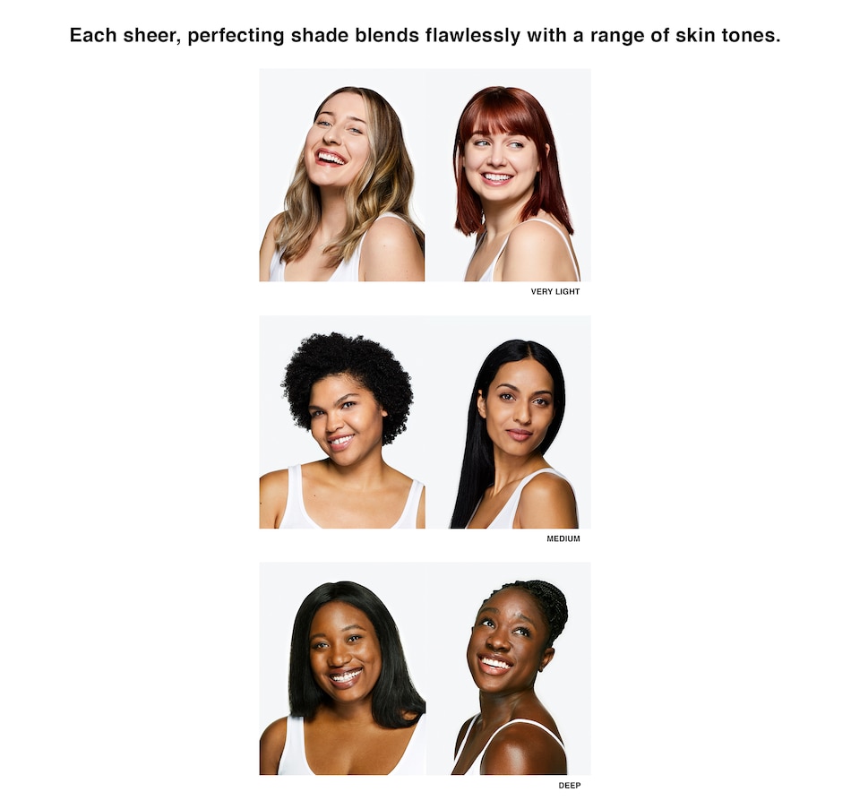 Mimetic-Shade Technology means each sheer, perfecting shade blends flawlessly with a range of skin tones. Hyaluronic acid and activated aloe water help keep skin hydrated for 12 hours. SPF and antioxidants help shield skin from the harmful effects of UV, pollution, pollen and other impurities.