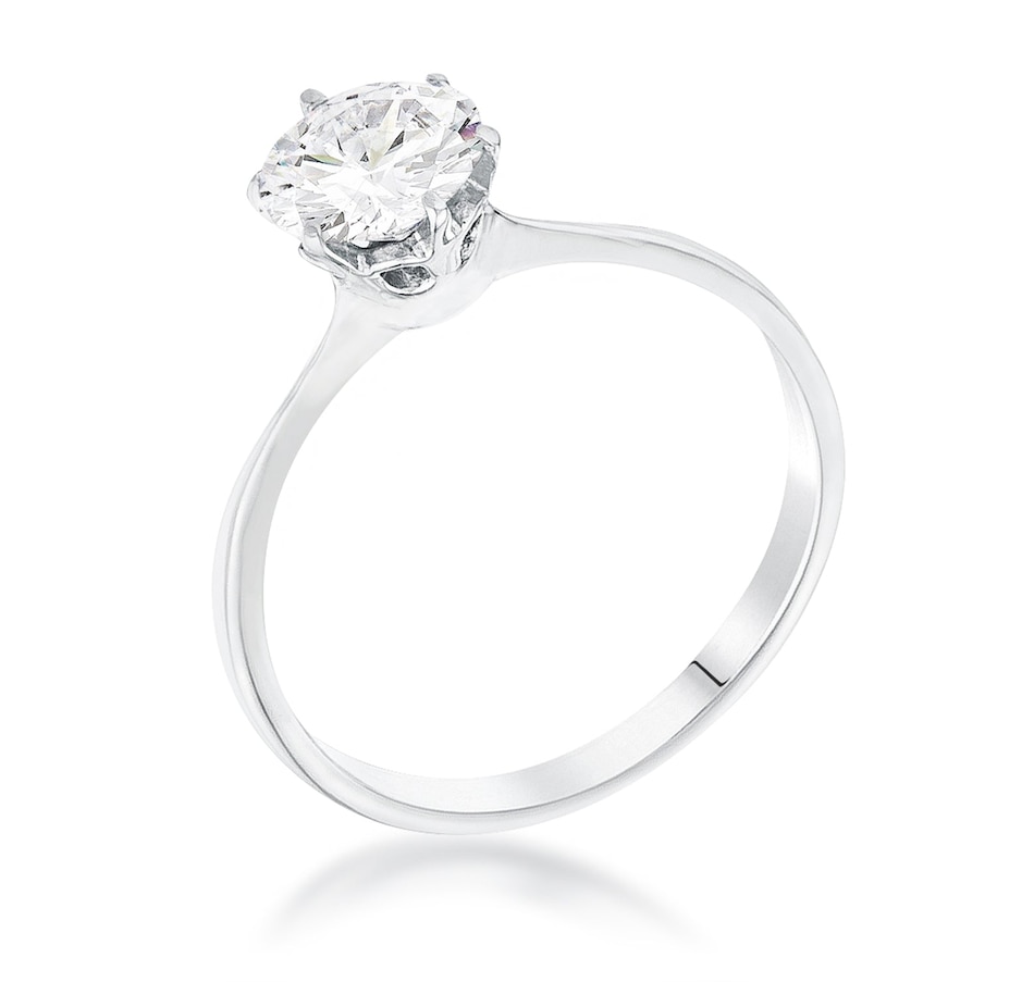 A gorgeous 1 carat solitaire stone accents a simple setting in this classic ring. The perfect piece for any special occasion.