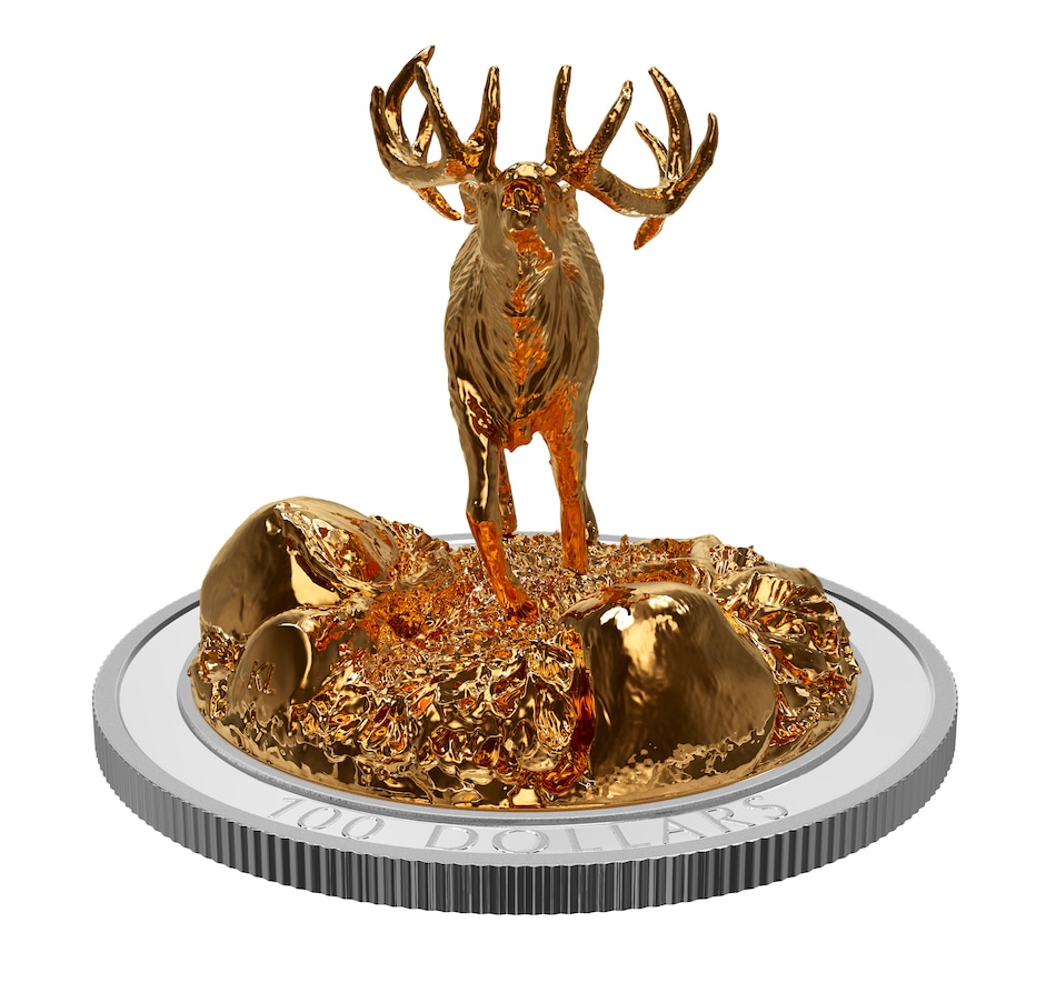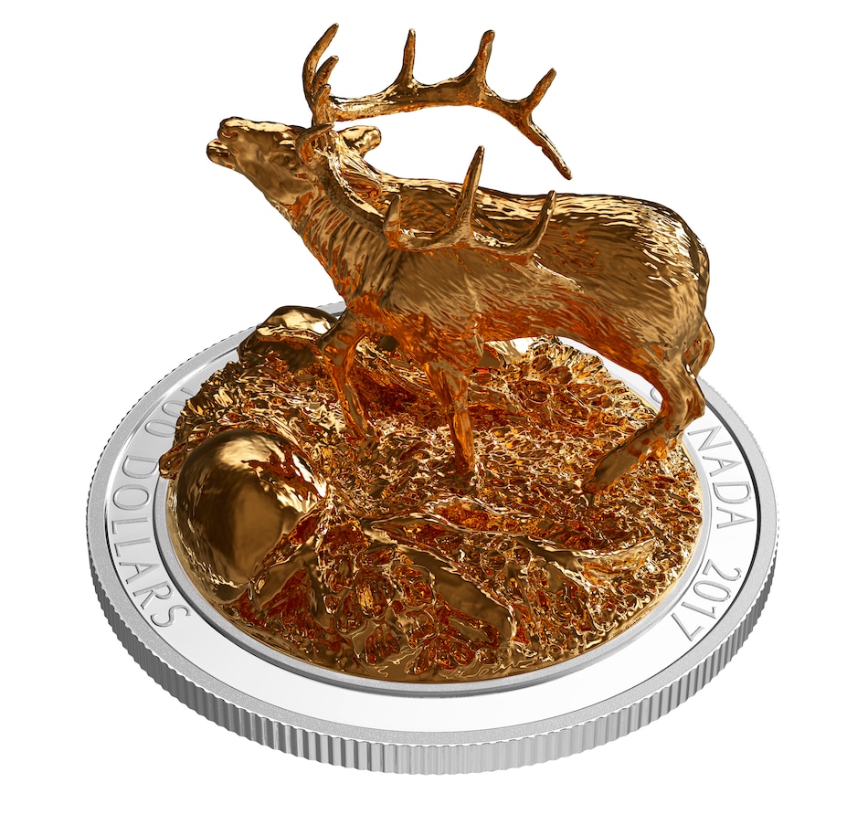 $100 Fine Silver 3D Sculpture Coin 2017 Iconic Canadian Animals: Elk