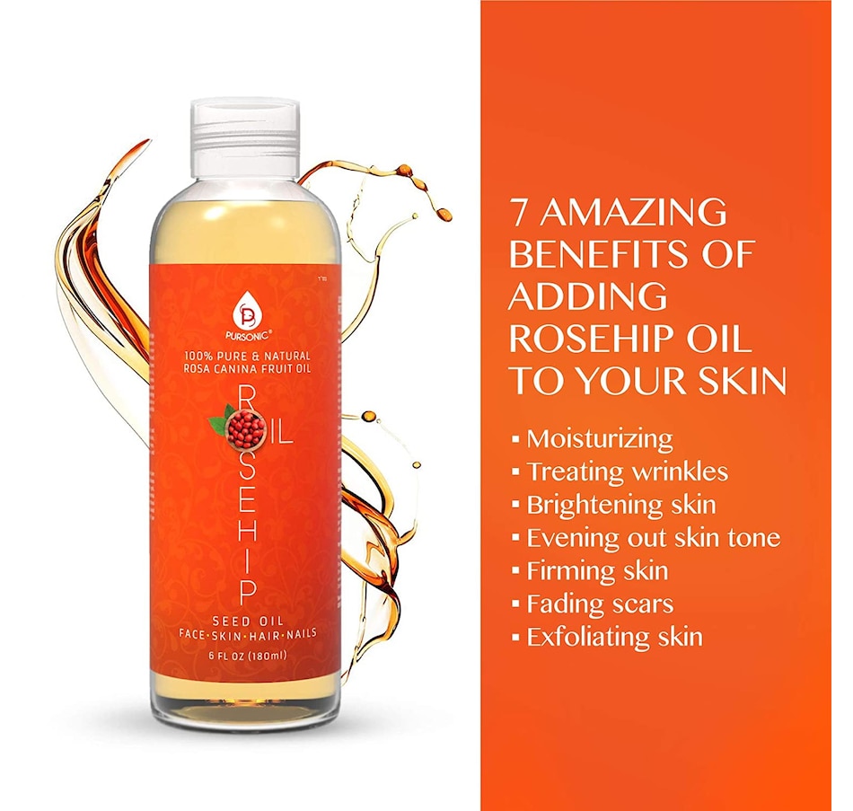 Our 100% Pure Rosehip Oil is a cold pressed, fresh and high-quality natural oil. Rosehip oil helps to diminish the appearance of fine lines, wrinkles, and scars. There are much more benefits of this versatile plant and the essential oil derived from it. Rosehip oil is extracted from the seeds and seed cases of a rose bush. The oil from the plant contains vitamin A, vitamin C, and essential fatty acids. These combined nutrients make it a great skincare product, packed full of natural anti-oxidants. These properties are also great for rejuvenating the skin and helping it to heal from scarring. Applied twice a day, rosehip oil can help your skin return to a more youthful appearance. Expect to see results in about three months.Features:For skin in need of clean and natural nourishment, as a moisturizer or for massageRosehip Seed Oil will give your skin a glowing, radiant, and clear complexion as it diminishes old and new acne scars, wrinkles, crow’s feet, stretch marks (striae), skin tags, cellulite marks, fine lines, eczema, age spots, and sun spots. Excellent Lipstick Primer, Lip Healer, and Lip Balm as well.Our oil is the perfect anti-aging serum with natural hydration, anti-inflammatory, fatty acids, and anti-oxidant properties known to work quickly to tightening and restore elasticity to lose and sagging skin.Model Number: RHO6