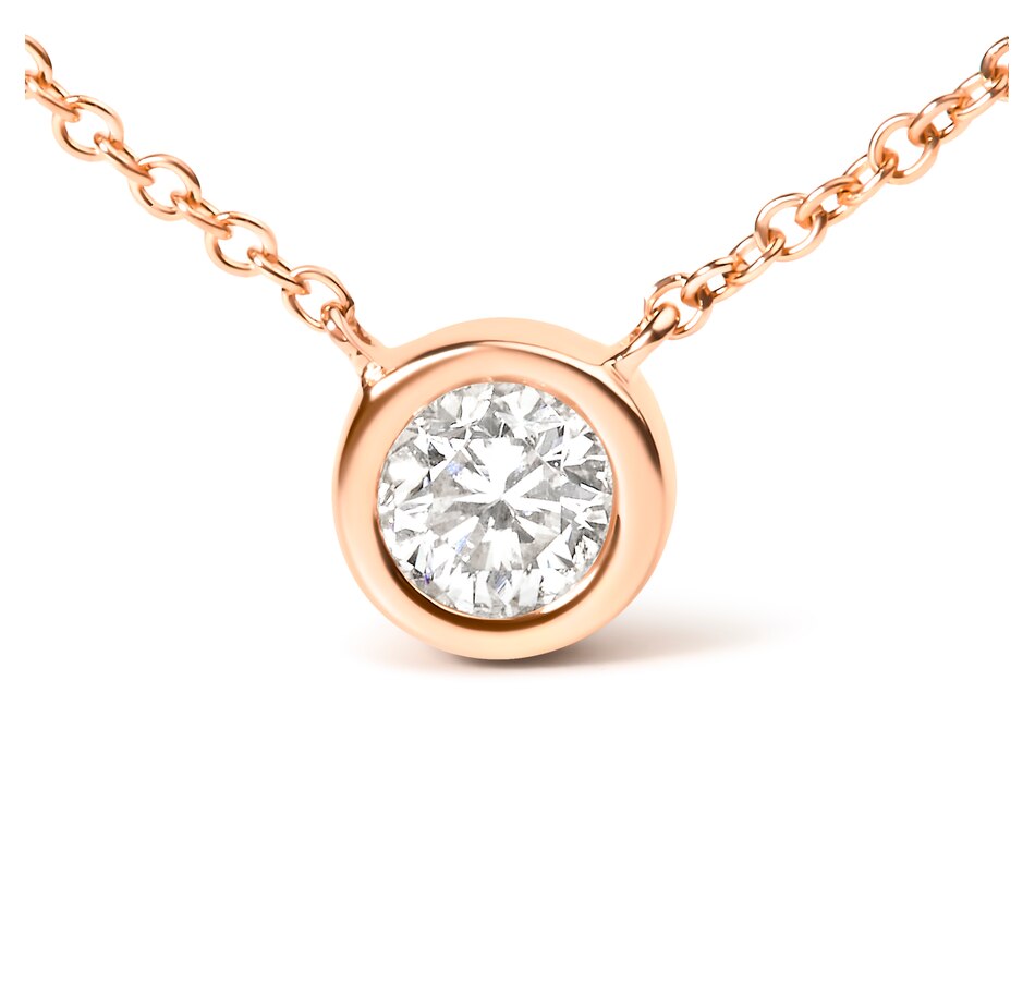 10K Rose Gold 1/3 Carat Round Brilliant-Cut Diamond Modern Bezel-Set Solitaire 16"-18" Pendant Necklace (H-I Color, SI2-I1 Clarity)