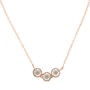 This gorgeous 10k rose and white gold plated .925 sterling silver pendant has an elegant three circle design that sparkles. Each circle is set with a champagne color diamond in an elegant miracle setting. This 1/4 ct tdw necklace comes with an 18" inch 10k rose gold plated sterling silver rolo necklace.