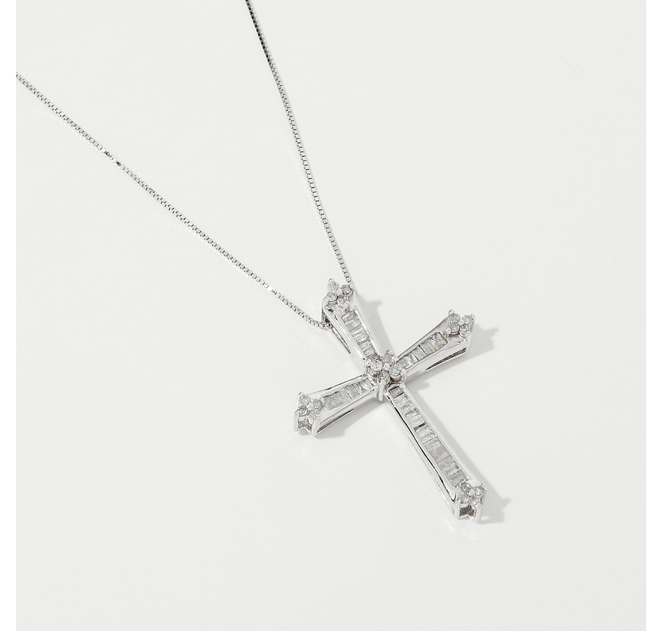 10K White Gold 0.33 av. ctw Diamond Cross Pendant with Chain