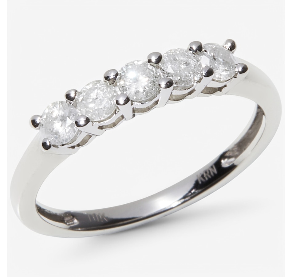 • (5) round shape, prong set and faceted diamonds (0.50 av. ctw)