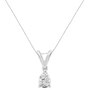 This classic design features a solitaire pear cut diamond hanging from a delicate chain. A timeless design to last a lifetime. It is crafted in 10 karat white gold and has a total diamond weight of 1/5 carats.