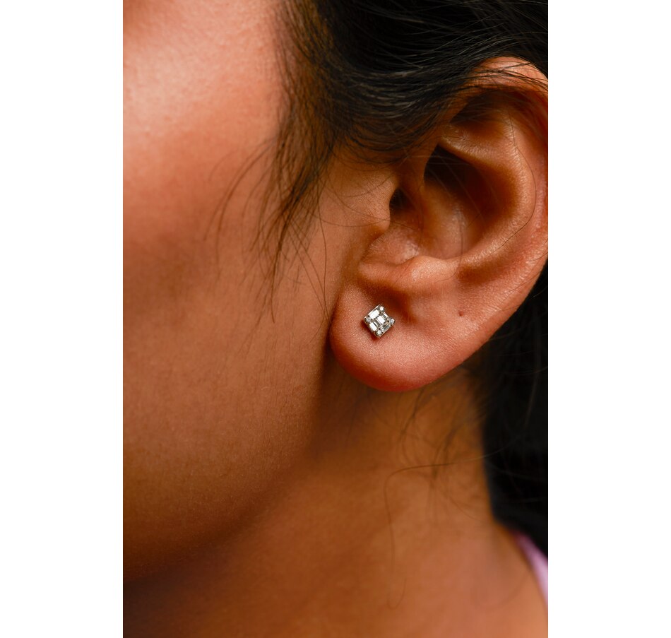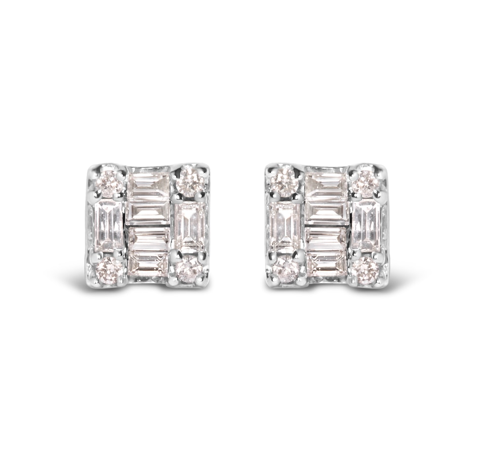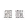 10K White Gold 1/7 Cttw Round and Baguette Diamond Mosaic Square Stud Earrings (H-I Color, I1-I2 Clarity)