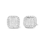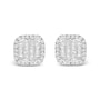10K White Gold 7/8 Cttw Diamond Princess Composite and Halo Stud Earrings