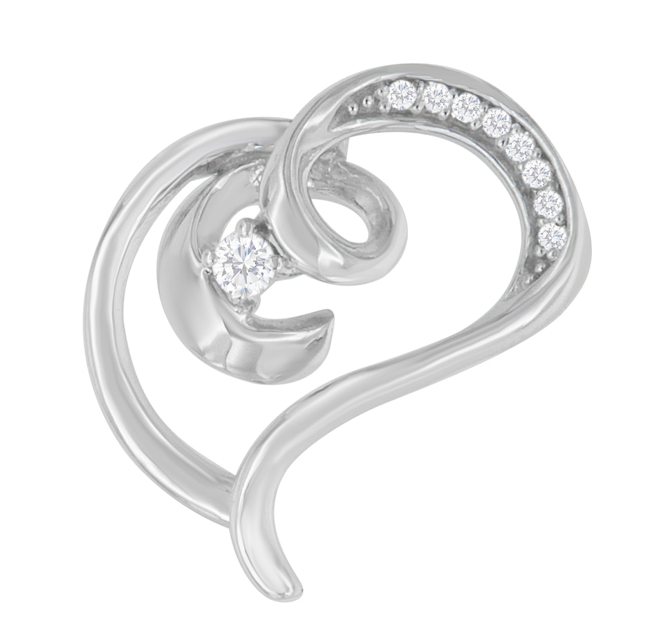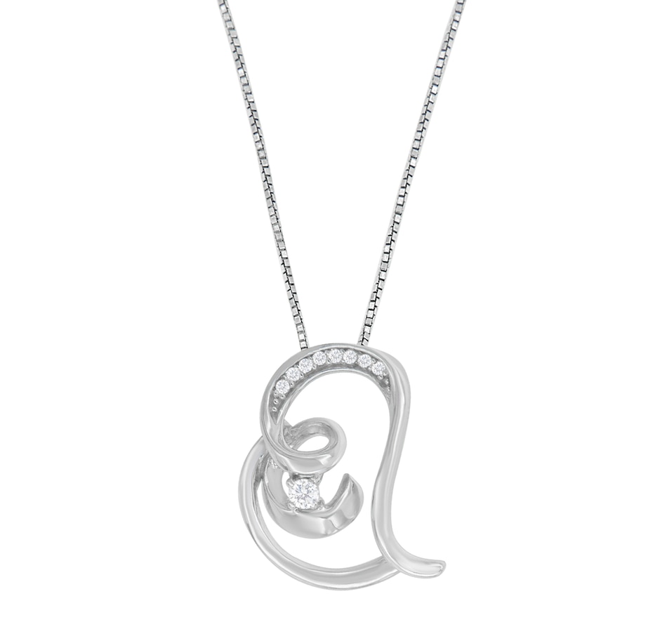 Celebrate someone you love with this stunning “Rings of Love” diamond open heart pendant necklace. This diamond necklace features a curvy open heart with a delicate swirl inside that cradles a single round diamond. The top curve of the heart is also inset with small diamond accents. Rose-cut, promo quality diamonds are milky and cloudy in nature. The pendant hangs from an 18" box chain necklace with a spring ring clasp. This authentic design is crafted of real 10 karat gold, a precious metal that will keep a tarnish-free shine for years to come. Both pretty and personal, this romantic diamond heart pendant necklace is sure to radiate romance. This open heart design features 9 sparkling diamonds. This sweet necklace makes a perfect Valentine's Day gift, or as a way to remember someone close to your heart. It's a classic and feminine piece she'll want to show off every day. It's a wonderful gift to let her know she has your heart forever.