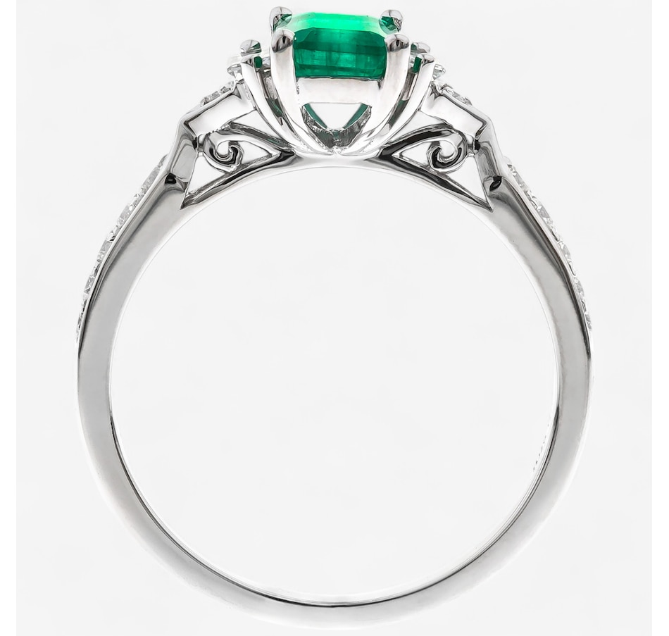 10K White Gold Emerald Cut Emerald and Diamond Ring