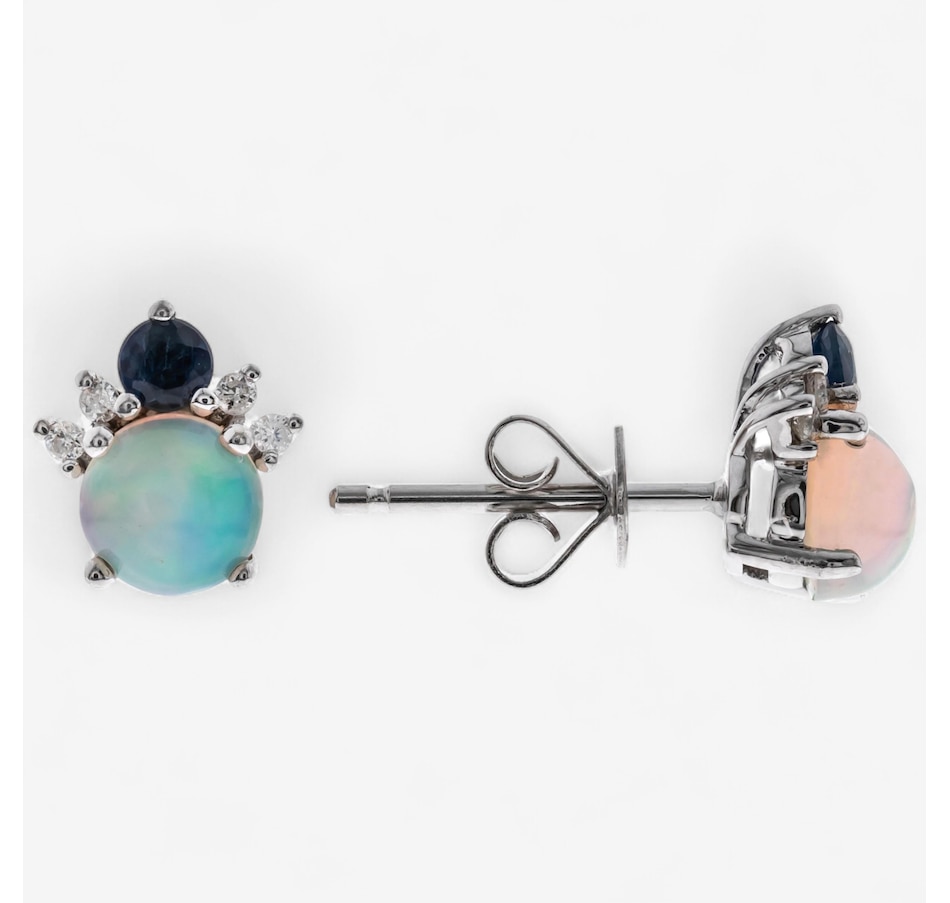 • (2) 5mm round shaped cabochon, prong set Ethiopian opals (0.67 av. ctw)