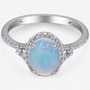10K White Gold Oval Shape Ethiopian Opal & Diamond Halo Ring