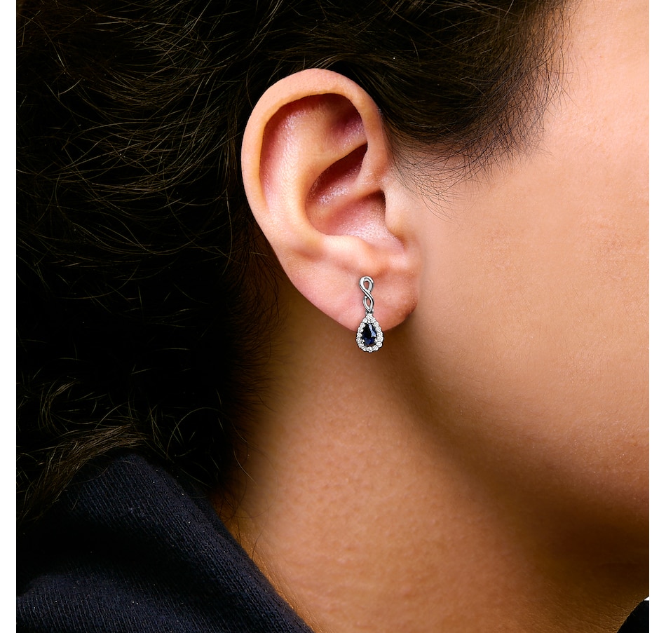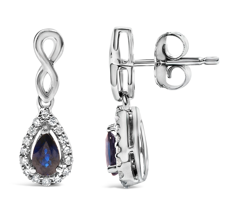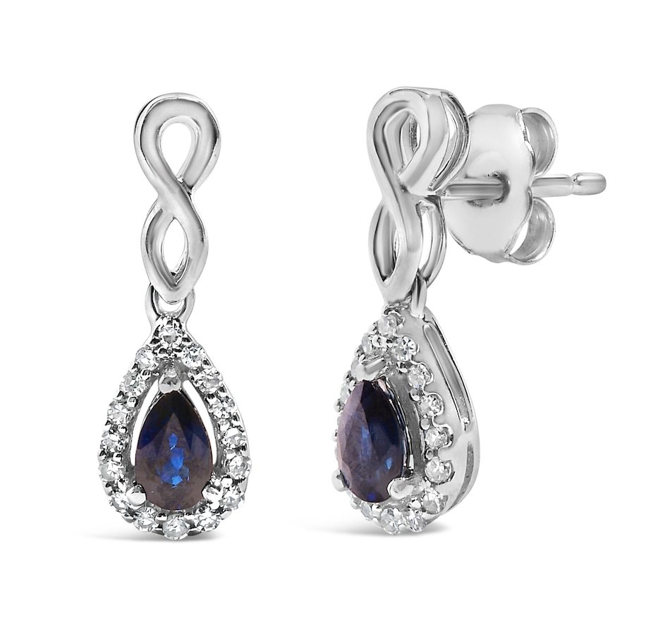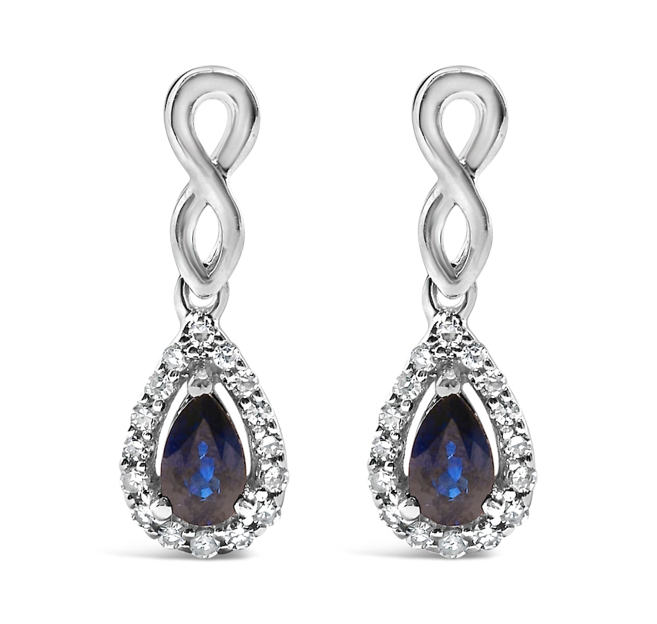 10K White Gold Pear Blue Sapphire 1/7 Ct Diamond Infinity Drop Earrings