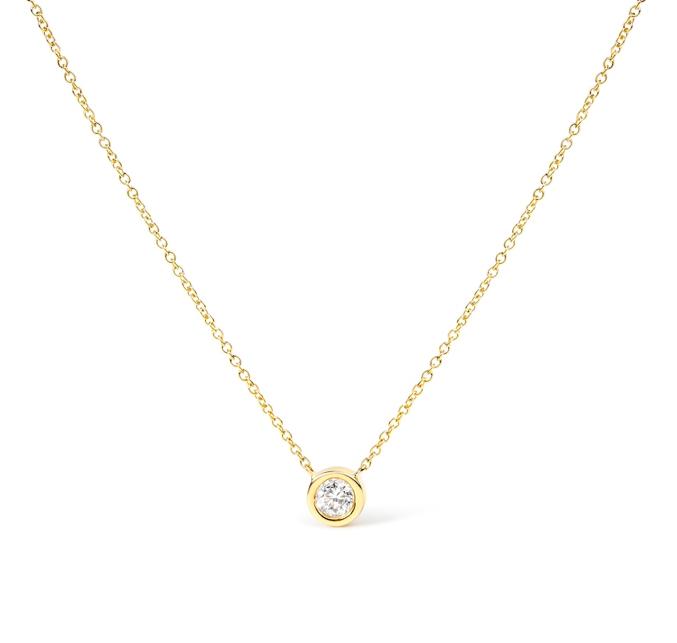 Some things shouldn't be reinvented, which is why we created the solitaire diamond necklace. This understated yet dazzling diamond-forward piece the perfect way to highlight every big occasion, transition, and personal achievement in your life. This exquisitely simple design features a single, brilliant-cut diamond in a solid 10K gold bezel setting, set on a 16 to 18 inch adjustable cable chain that is sure to complement any neckline perfectly. This is sure to become an everyday favorite; your future self will thank you!