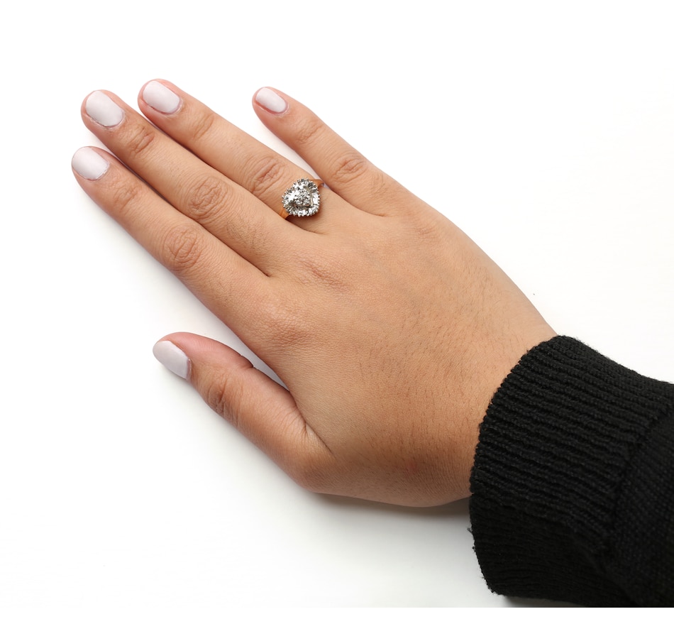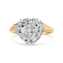 This stunning 10K yellow gold heart-shaped ballerina ring is the perfect way to show your love and appreciation for that special someone. The ring features a dazzling array of round and baguette cut diamonds in a beautiful ballerina design. With a total diamond weight of 0.25 cttw and 18 diamonds in total, this ring is sure to turn heads. The H-I color and I1-I2 clarity of the diamonds ensure that they sparkle and shine in any light. This ring is designed for women and comes in size 7. The natural diamonds are prong set to keep them secure and in place. This ring is a true work of art and is sure to be treasured for years to come.