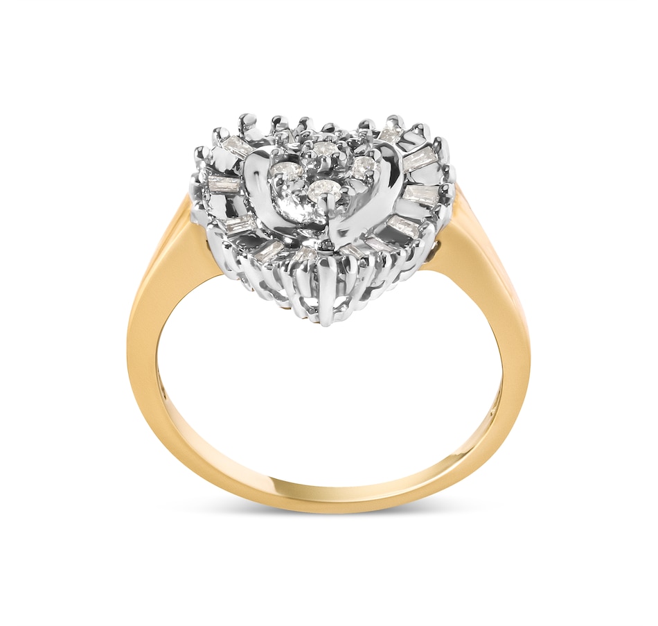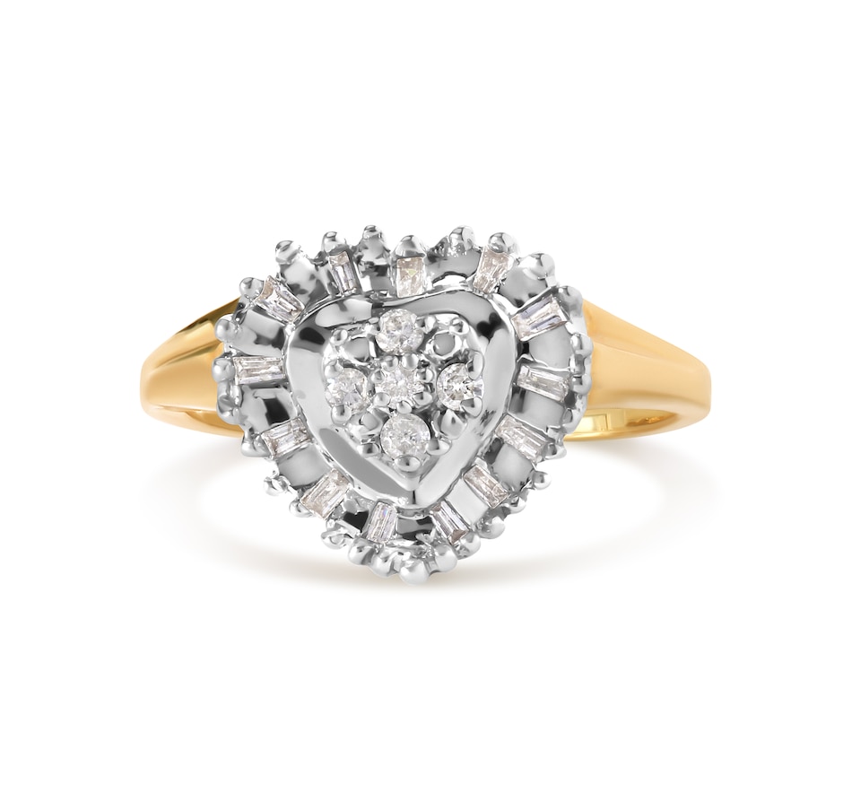 10K Yellow Gold 1/4 Cttw Round and Baguette cut Diamond Heart Shape Ballerina Ring (H-I Color, I1-I2 Clarity) - Ring Size 7