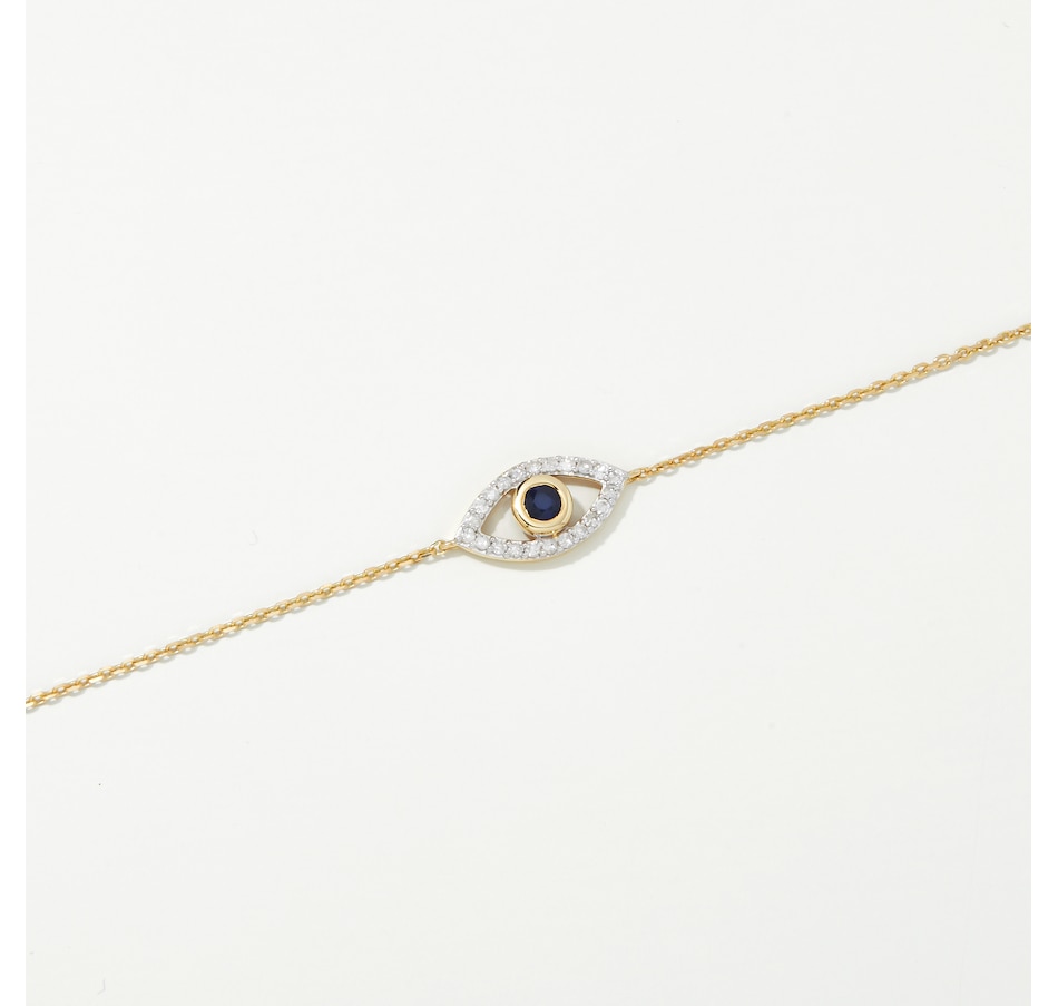 10K Yellow Gold Diamond and Blue Sapphire Evil Eye Bracelet