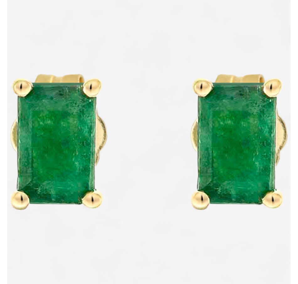 10K Yellow Gold Emerald Cut Emerald Stud Earrings