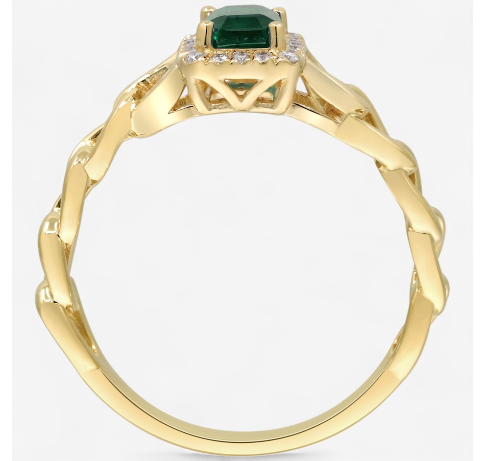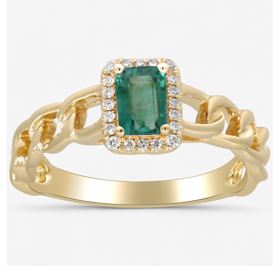 10K Yellow Gold Emerald & Diamond Halo Ring