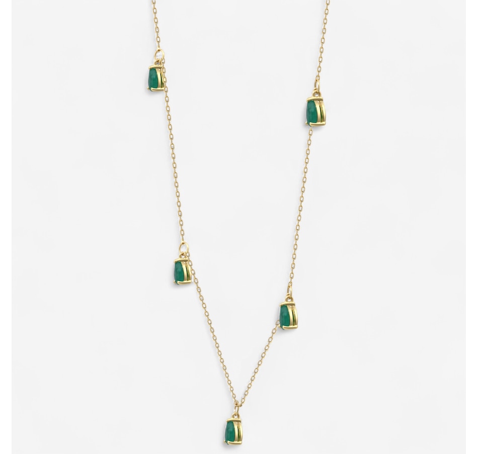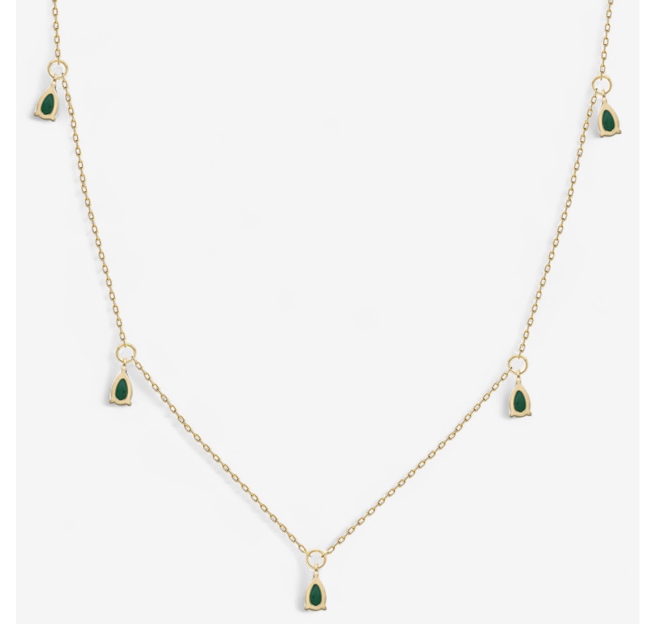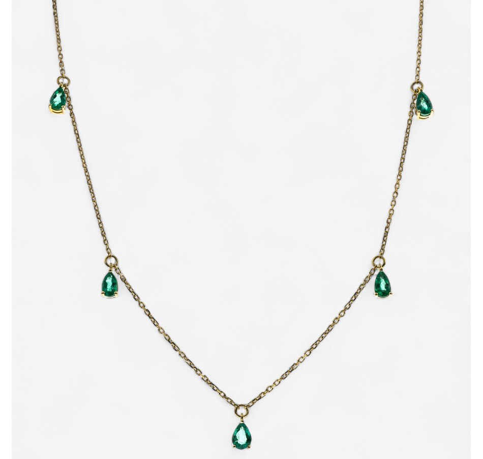 • (5) 5x3mm pear, prong set & faceted emeralds (0.90 ctw)