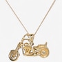 This bold and finely crafted yellow gold motorcycle pendant will rev up your jewellery collection with a striking blend of whimsical charm and true-to-life detail. This unique piece is expertly rendered in 3D, showcasing a miniature motorcycle that captures the spirit of the open road with stunning realism.