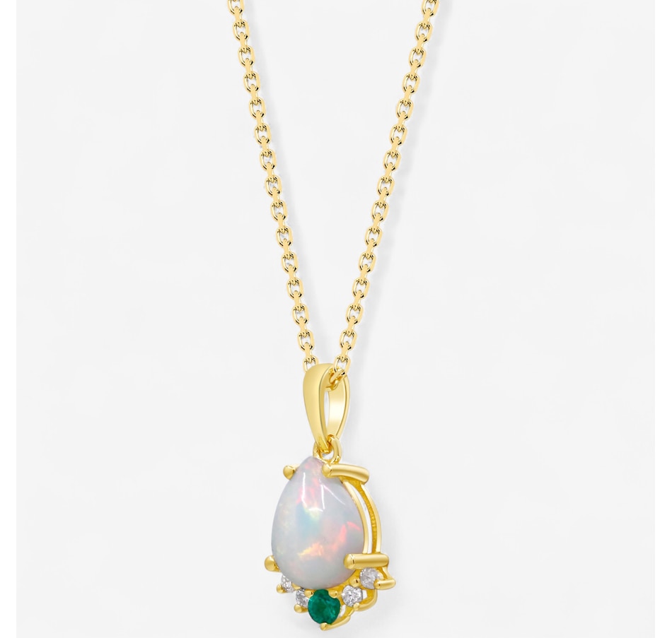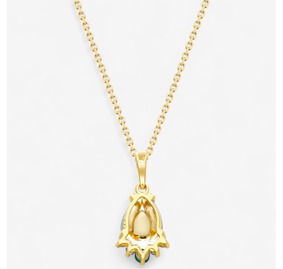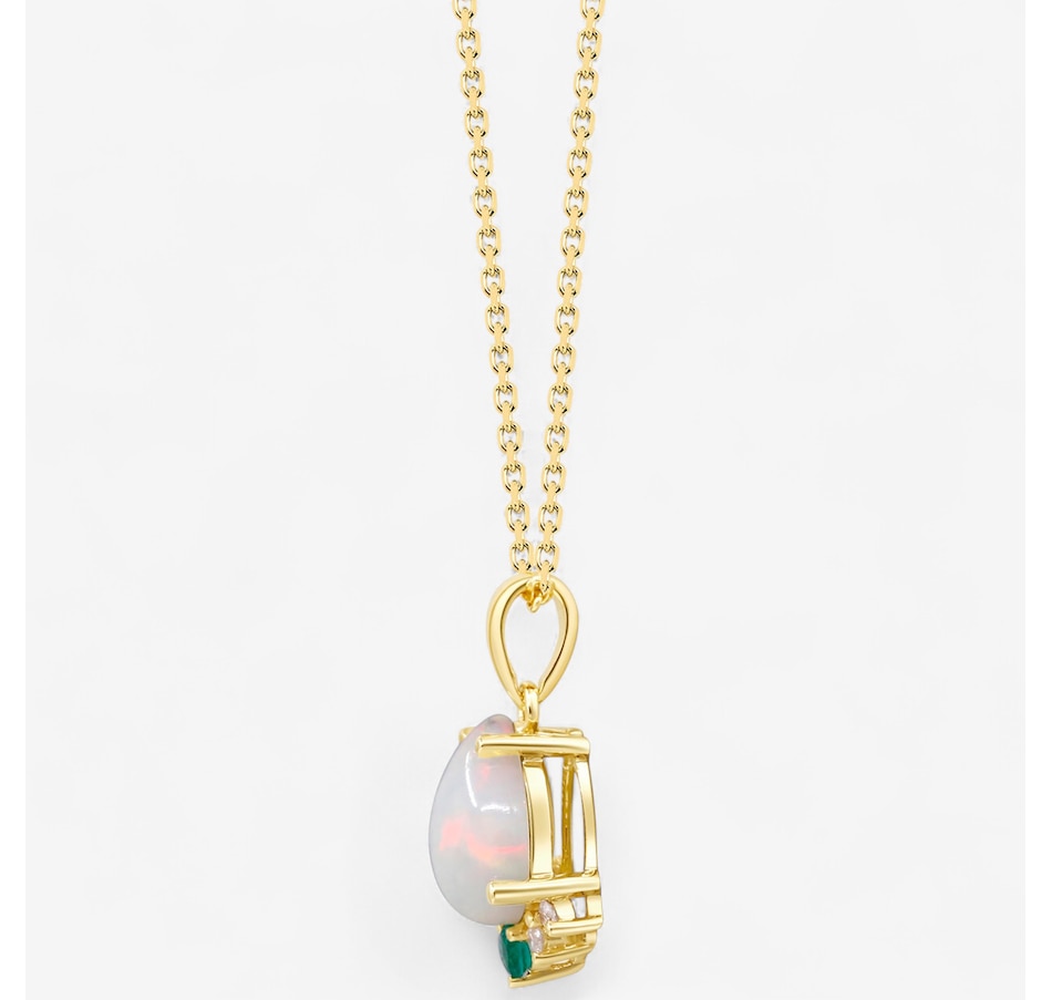 10K Yellow Gold Oval Shape Ethiopian Opal, Emerald & Diamond Pendant with Chain