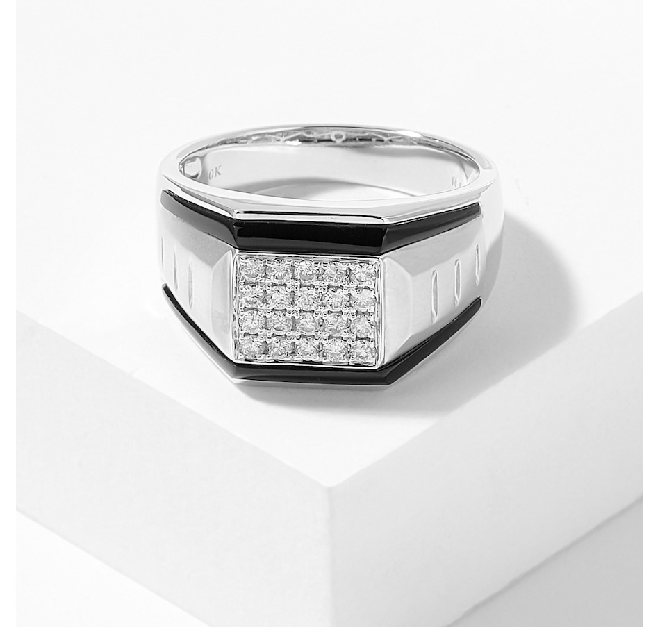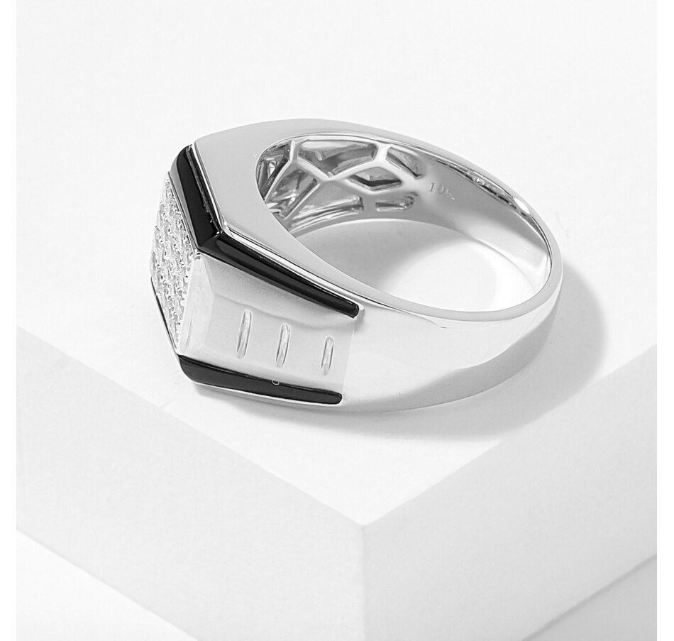 10K Yellow Gold Pave Diamond And Onyx Men's Ring