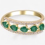 • (5) 4mm x 3mm pear shape, prong set and faceted emeralds (0.64 av. ctw)