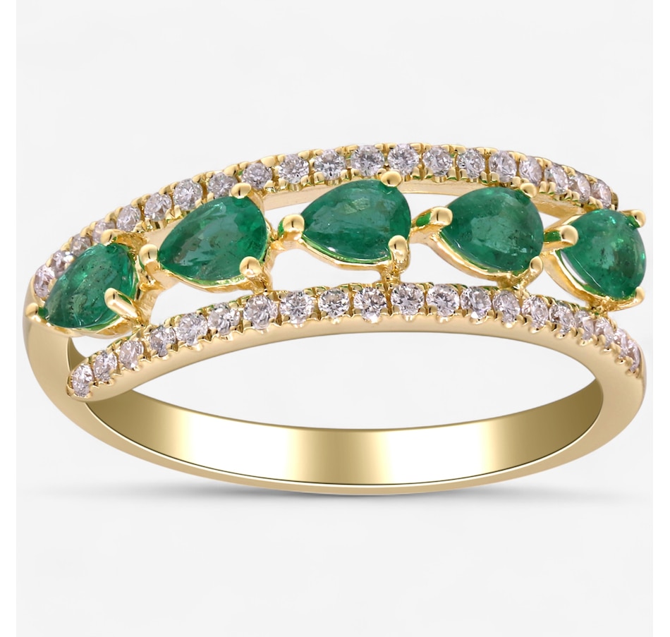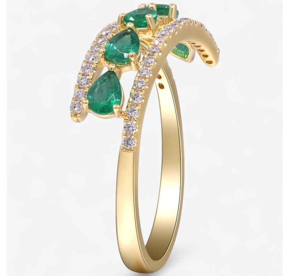 10K Yellow Gold Pear Shaped Emerald and Diamond Ring