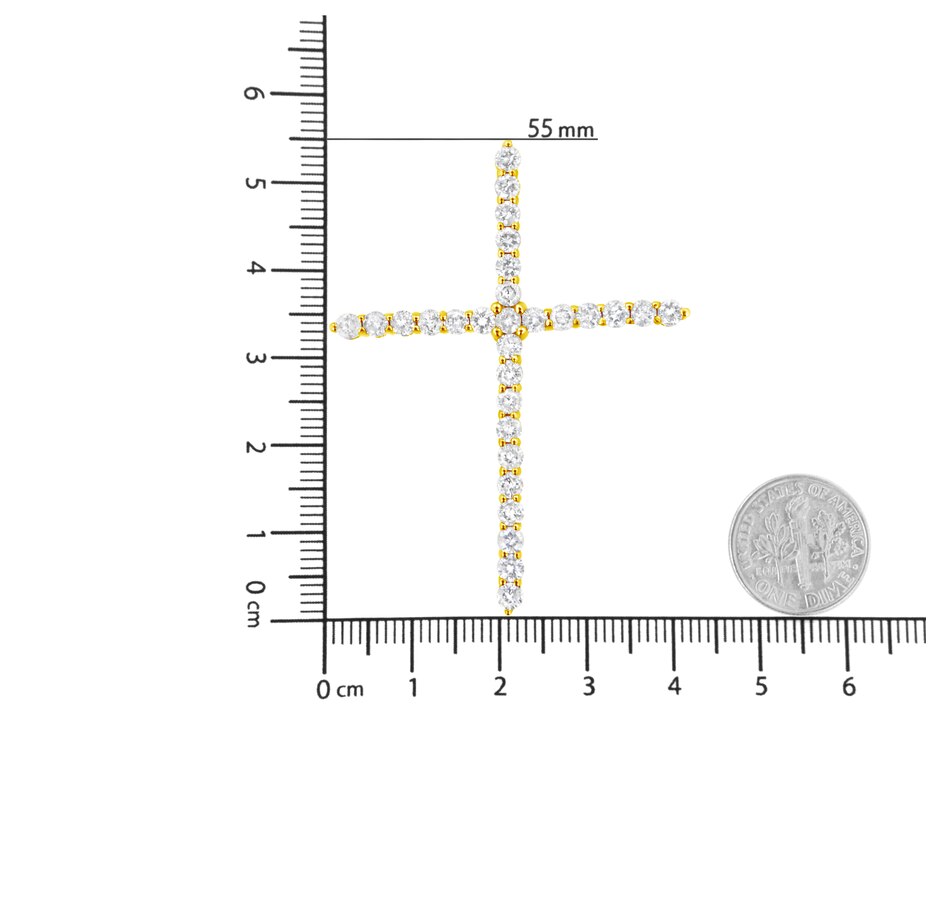 10K Yellow Gold Plated .925 Sterling Silver 3.0 Cttw Prong-Set Round Brilliant Cut Diamond Cross 18" Pendant Necklace (J-K Color, I1-I2 Clarity)