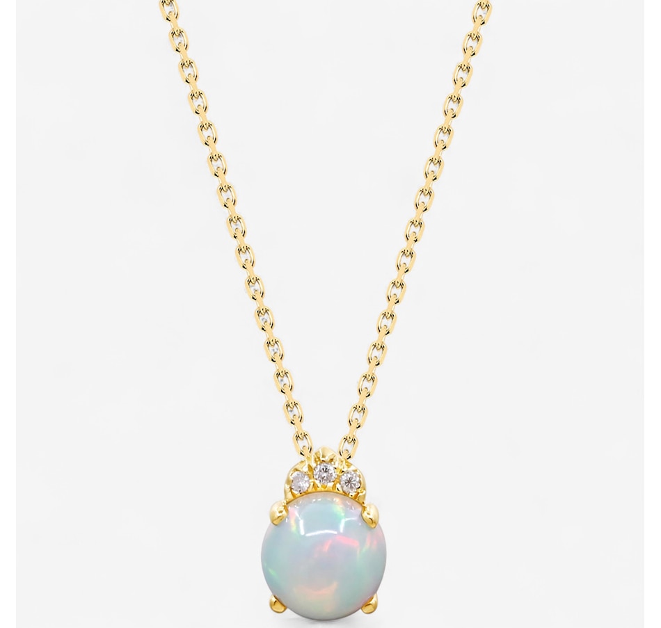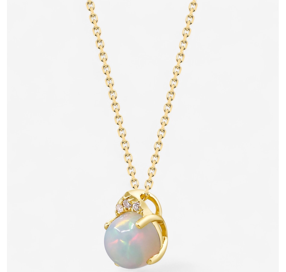 10K Yellow Gold Round Shape Ethiopian Opal & Diamond Pendant with Chain