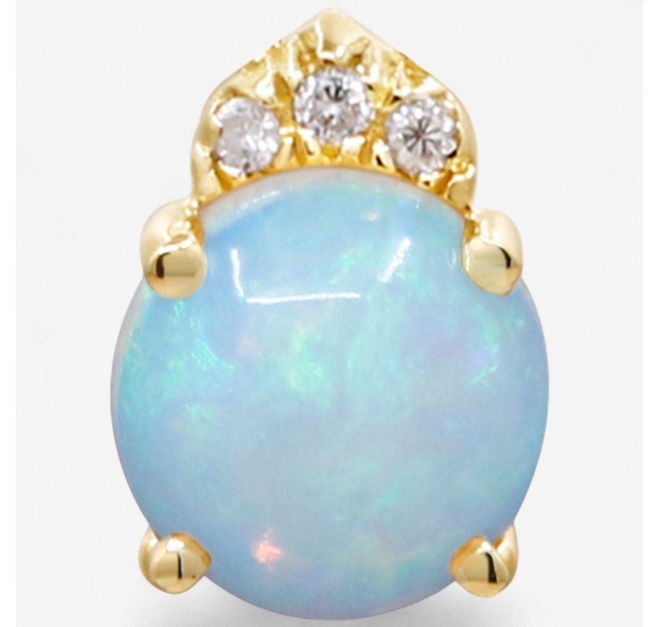 • (1) 6mm round cabochon, prong set Ethiopian opal (0.57 av. ctw)