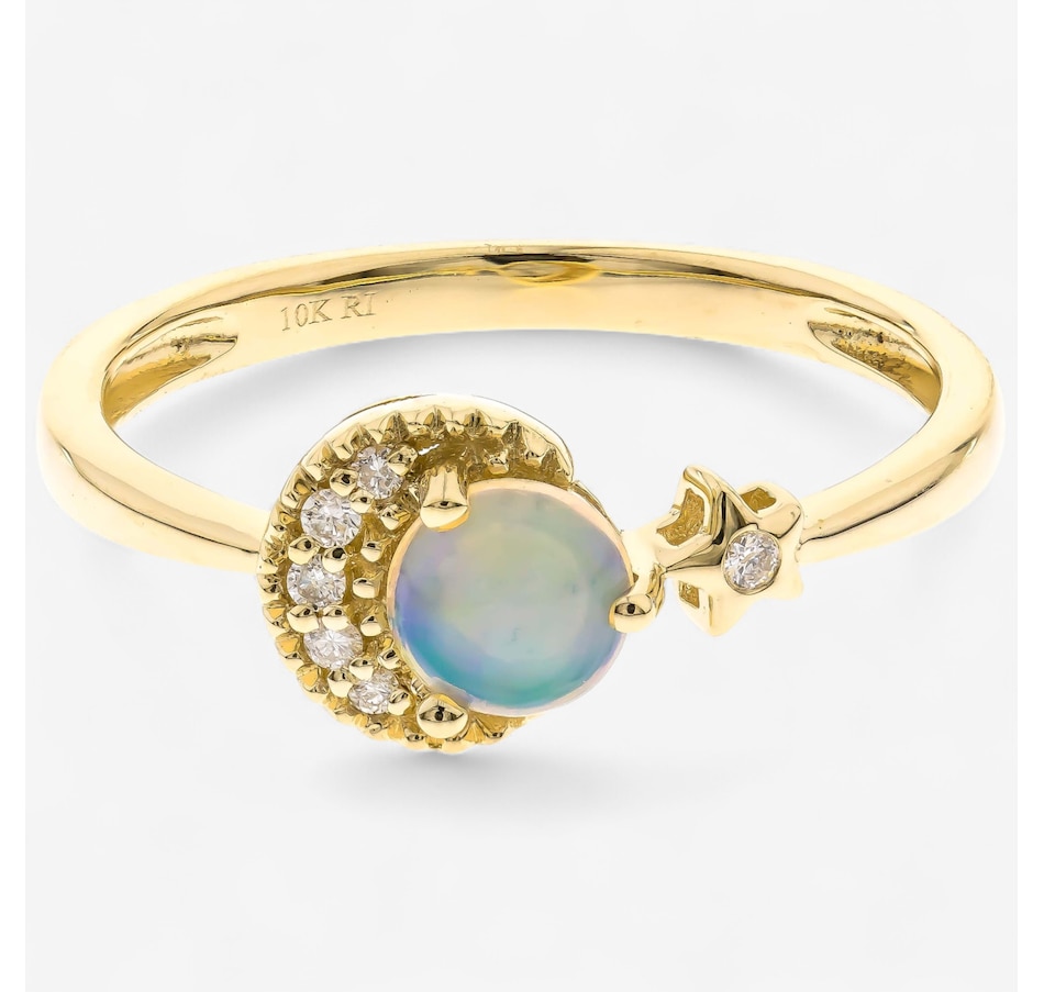 • (1) 5mm round shaped cabochon, prong set Ethiopian opal (0.36 av. ctw)