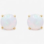 • (2) 6mm round shaped cabochon, prong set Ethiopian opals (1.24 av. ctw)