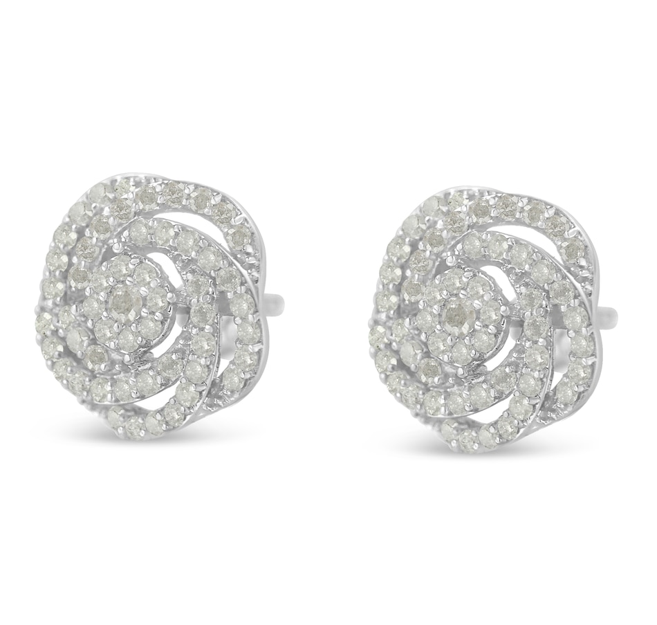 10KT White Gold Diamond Flower Stud Earring (1/2 cttw, I-J Color, I1-I2 Clarity)