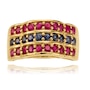10KT Yellow Gold 3-Row Ruby and Sapphire Scalloped Band Style Ring