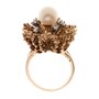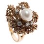 • 10KT Yellow and White Gold Floral Design Cultured Pearl and Diamond Ring with Stippled Texture