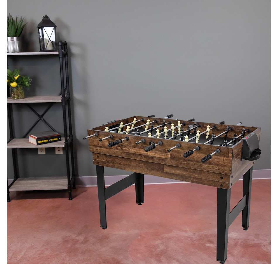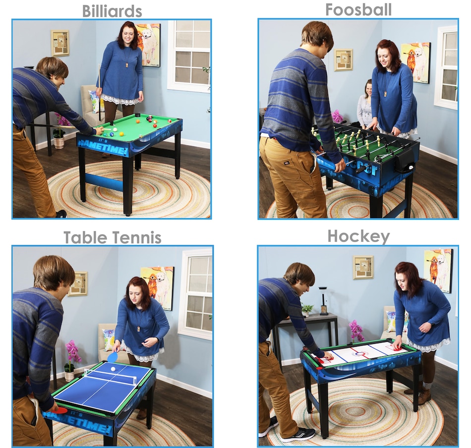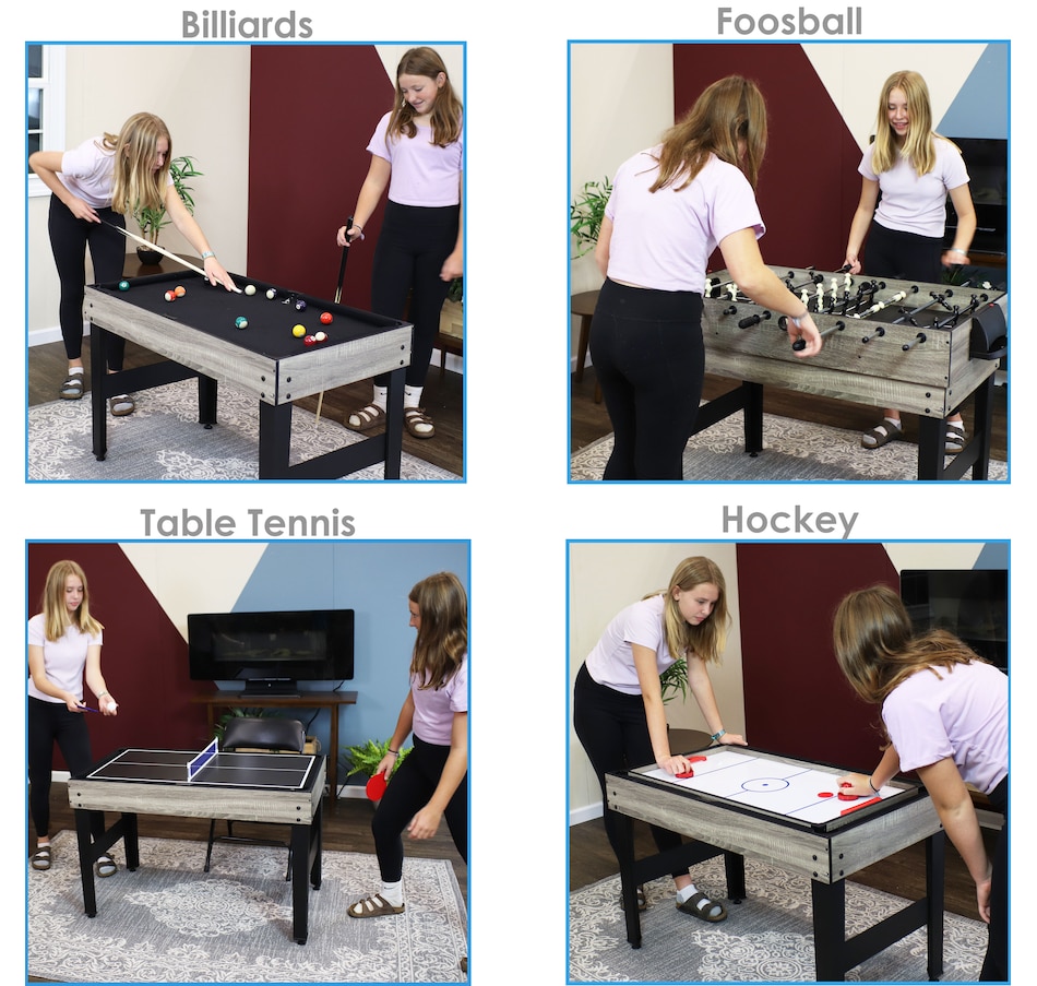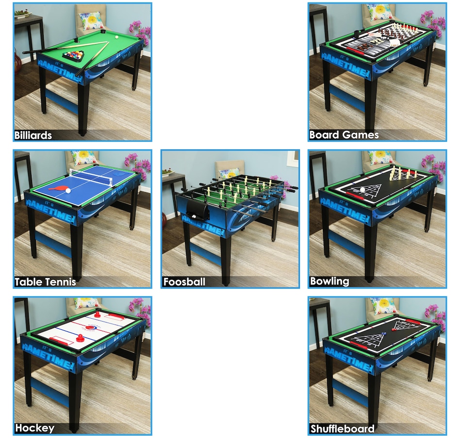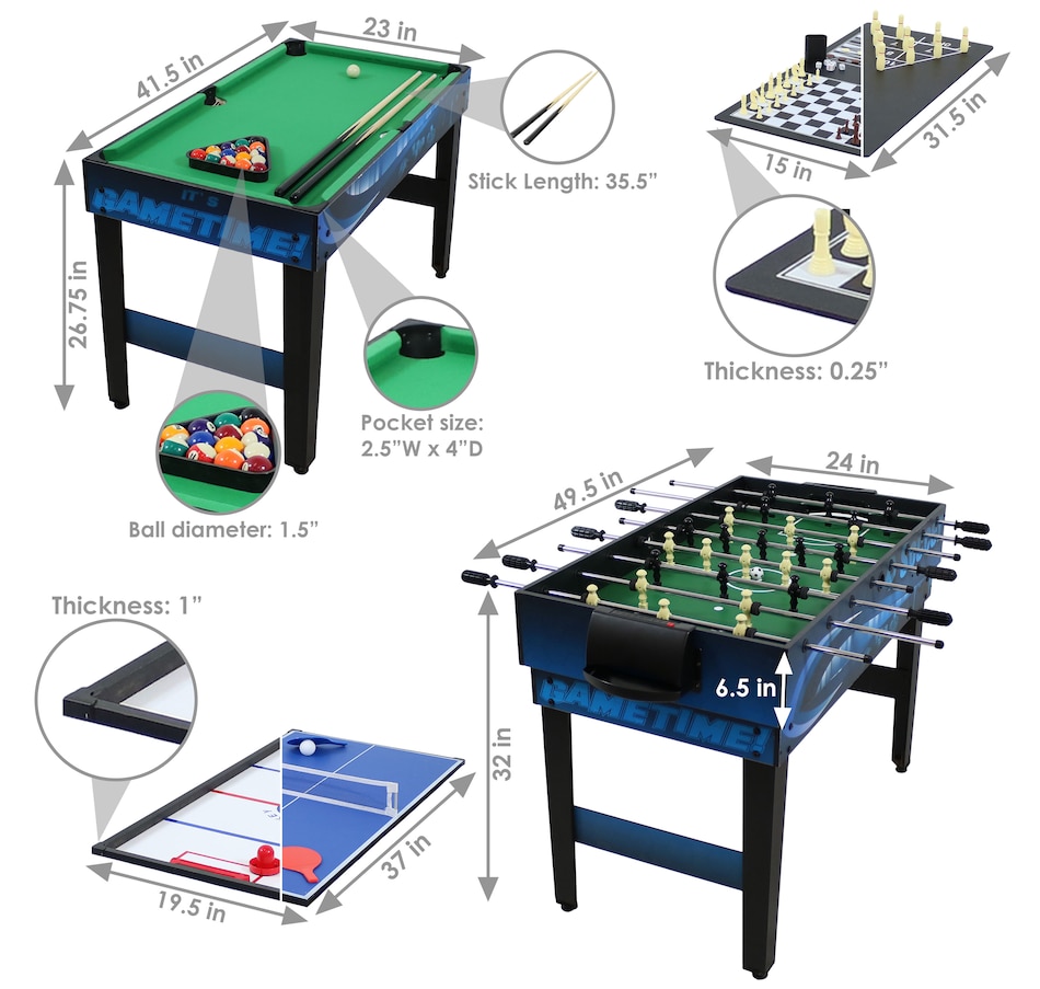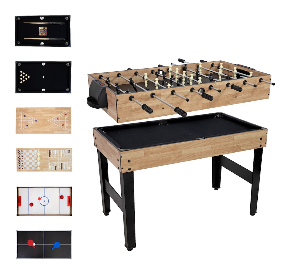 This 10-in-1 multi-game table for kids is a wonderful indoor game center for friends and family. Keep everyone entertained for hours on end with a combo game table set, especially during storms or cold weather for a fun night in. With multiple games to choose from, loved ones will always have a way to spend time together. This multi-game table for adults and kids is great for switching back and forth between sports to quickly start a new game once tired of the current game. This game table features ten classics including billiards, foosball, hockey, table tennis, shuffleboard, chess, checkers, cards, backgammon, and bowling. Plus, the comfy, easy-to-grip handles on the foosball table will make scoring the winning goal a breeze. It's easy to keep track of who's winning with the manual scorer located on each side of the table. With everything it has to offer, this kids game table combo offers plenty of fun for the family.