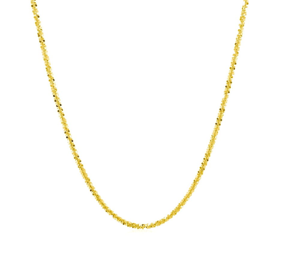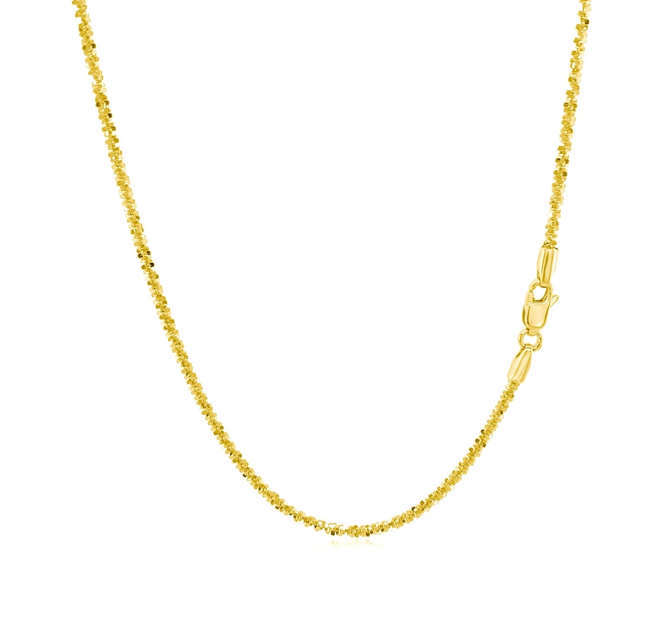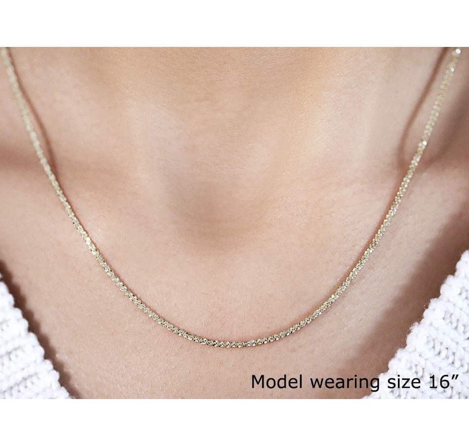 This sparkle chain comes in 10k yellow gold and has a width of 1.5 millimeters.