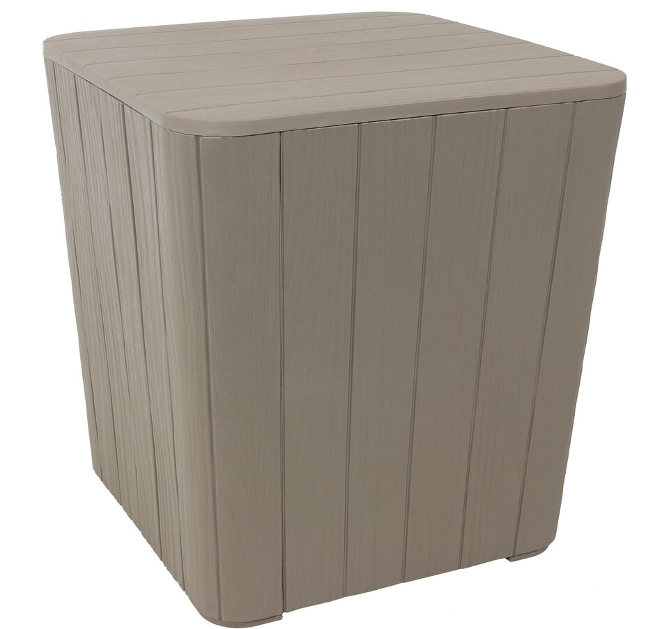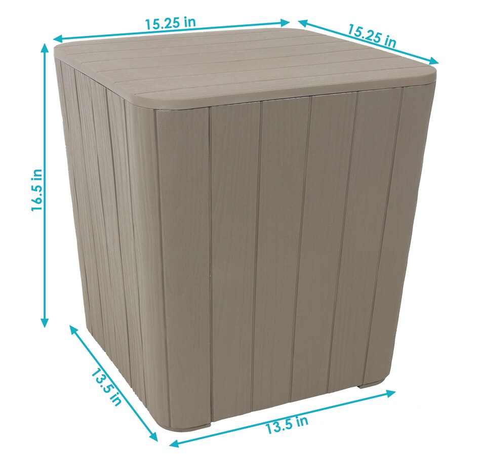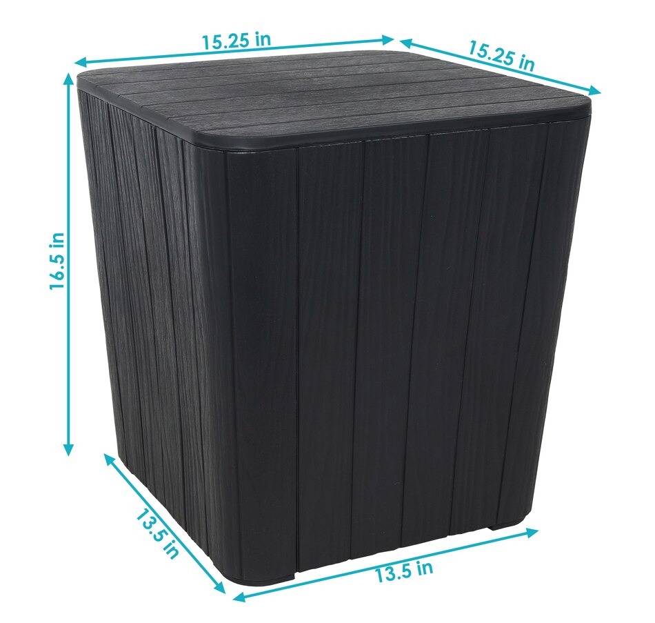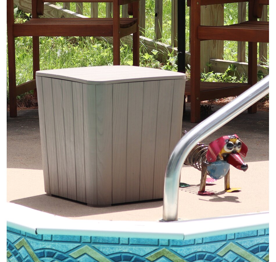 Make the most of any patio space with this multi-functional outdoor deck box and storage featuring a convenient tabletop. This deck box features a UV-protected and weather-resistant polypropylene and resin construction with a woodgrain look designed to complement any outdoor space while remaining durable against the outdoor elements. This storage box is the right height to use as a side table next to any patio or poolside furniture for easy storage of pool items and pillows while being able to set down your cool drink on top. The storage box is easy to assemble and designed to protect pillows, pool accessories, outdoor tools, decor and more! Keep all your favorite things safe this this storage box: stow away seasonal decorations,or other tools and items you want to have on hand with this woodgrain designed and weather-resistant storage box.