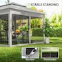 The Outsunny 11x11 pop up canopy will turn your yard into a sophisticated and functional focal point with a stylish appearance and considerate design. The powder-coated metal frame and 8 included ground stakes ensure that the structure is stable and enjoyable for plenty of summer seasons. Invite some friends over and relax under the tents for parties, while the mesh sidewalls provide some privacy. Retake your enjoyment outside, with this screened canopy from Outsunny.