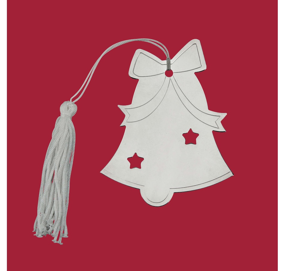 Looking for the perfect ornament to be able to add optional engraving to? Look no further, our bell ornament is totally flat and should be able to easily be engraved. The bell ornament is manufactured in a bright, nickel plated non-tarnish finish and includes a white tassel. The bell ornament measures 4" x 3.25". White Gift Box.