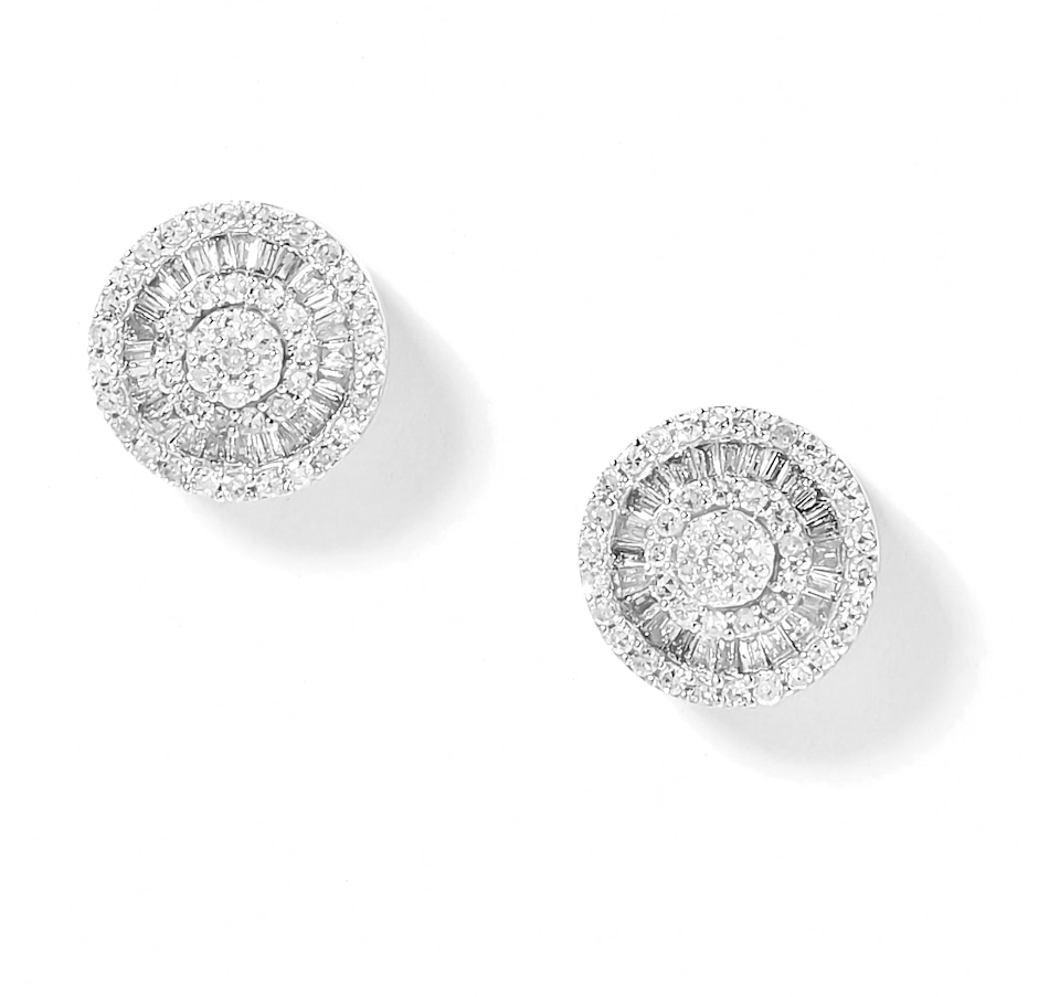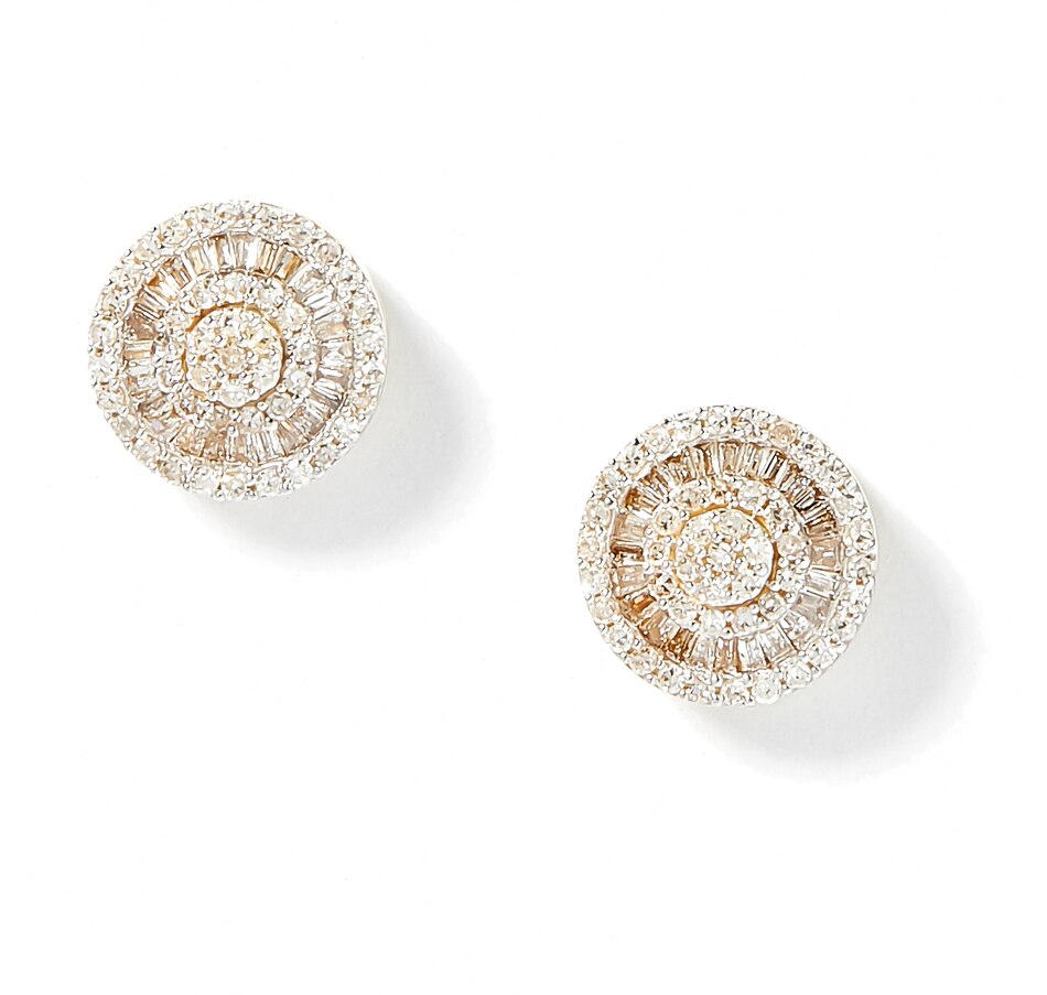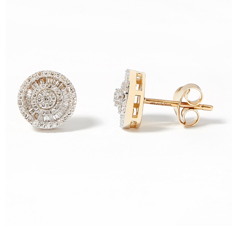 14K Gold 0.50ctw Round & Baguette Diamond Earrings