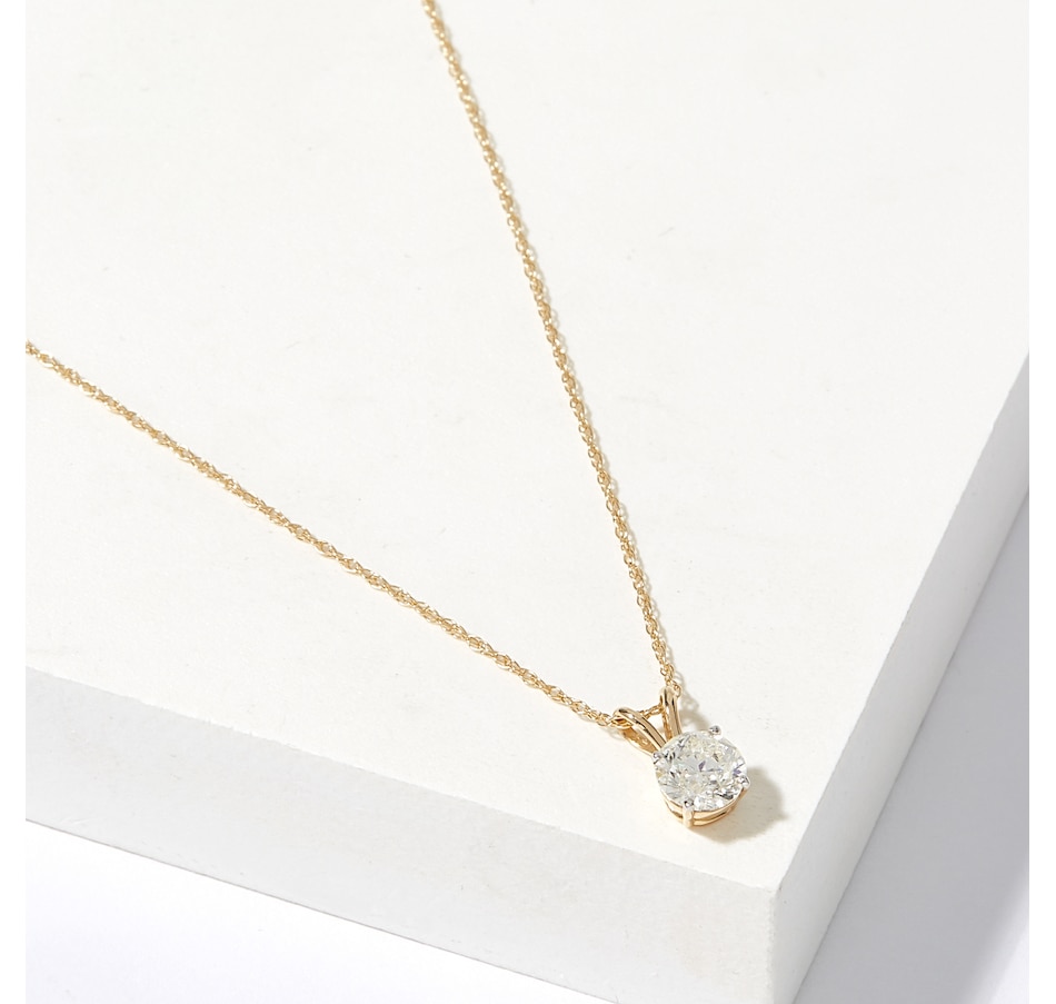 14K Gold 1.00ctw Round Shape Diamond Pendant with Chain