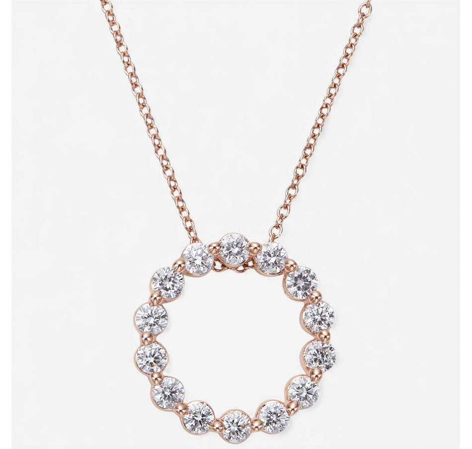 14K Rose Gold 1.00 ctw Diamond Circle Pendant with Chain