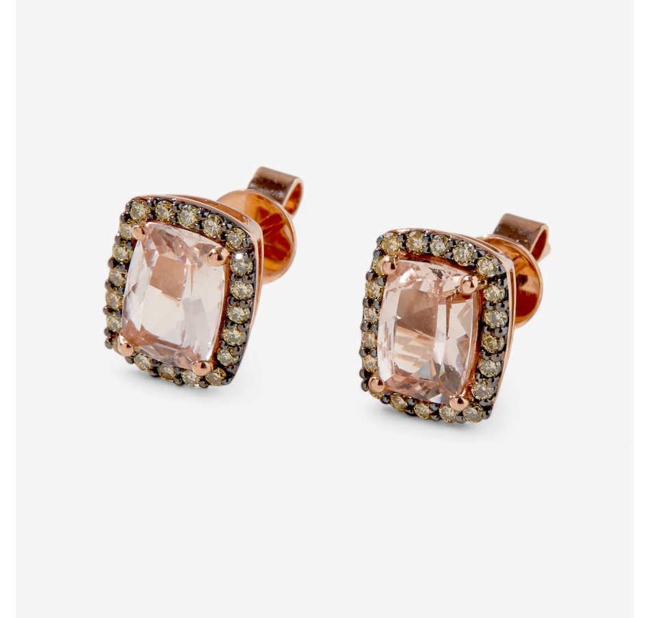 14K Rose Gold 1.82ctw Morganite & Yellow Diamond Stud Earrings