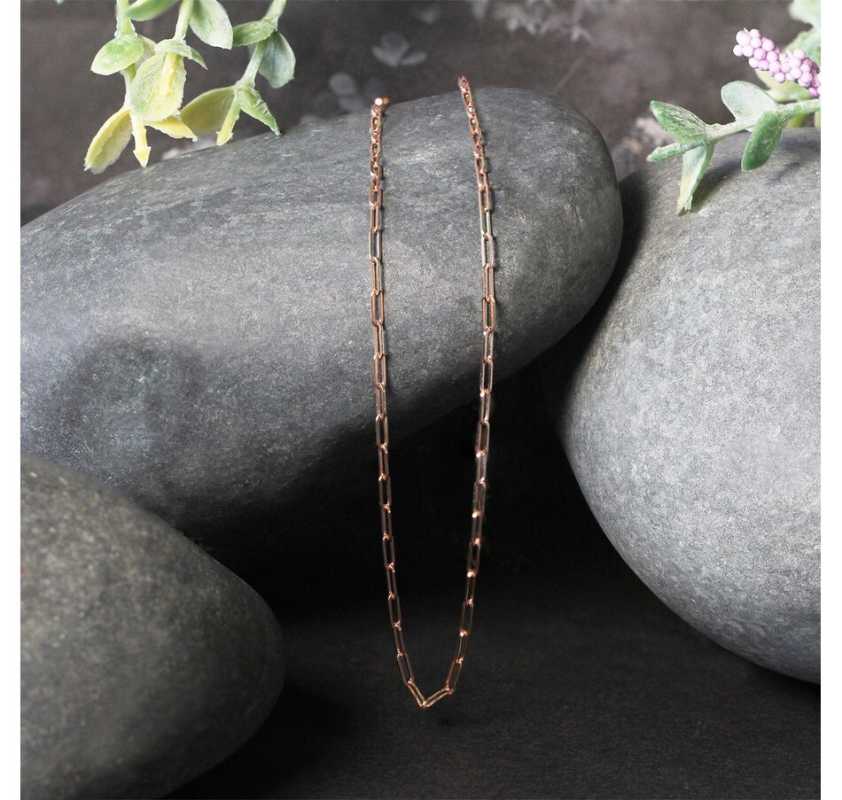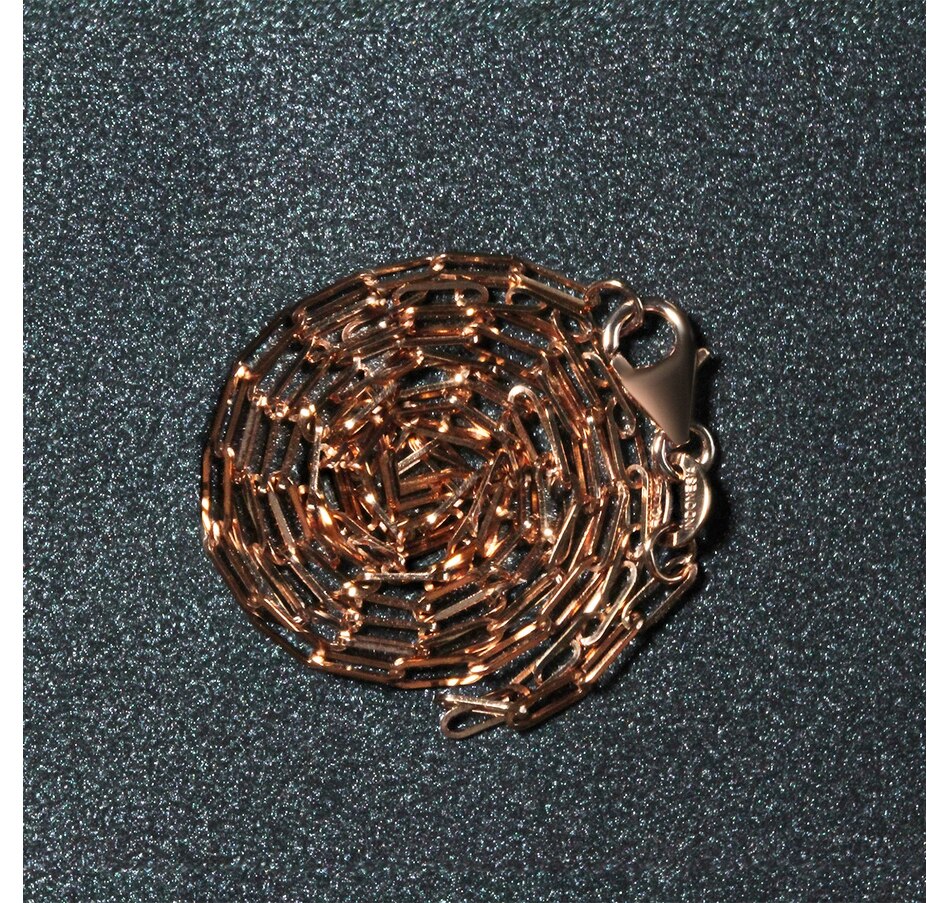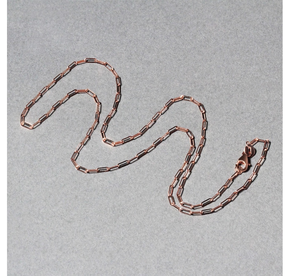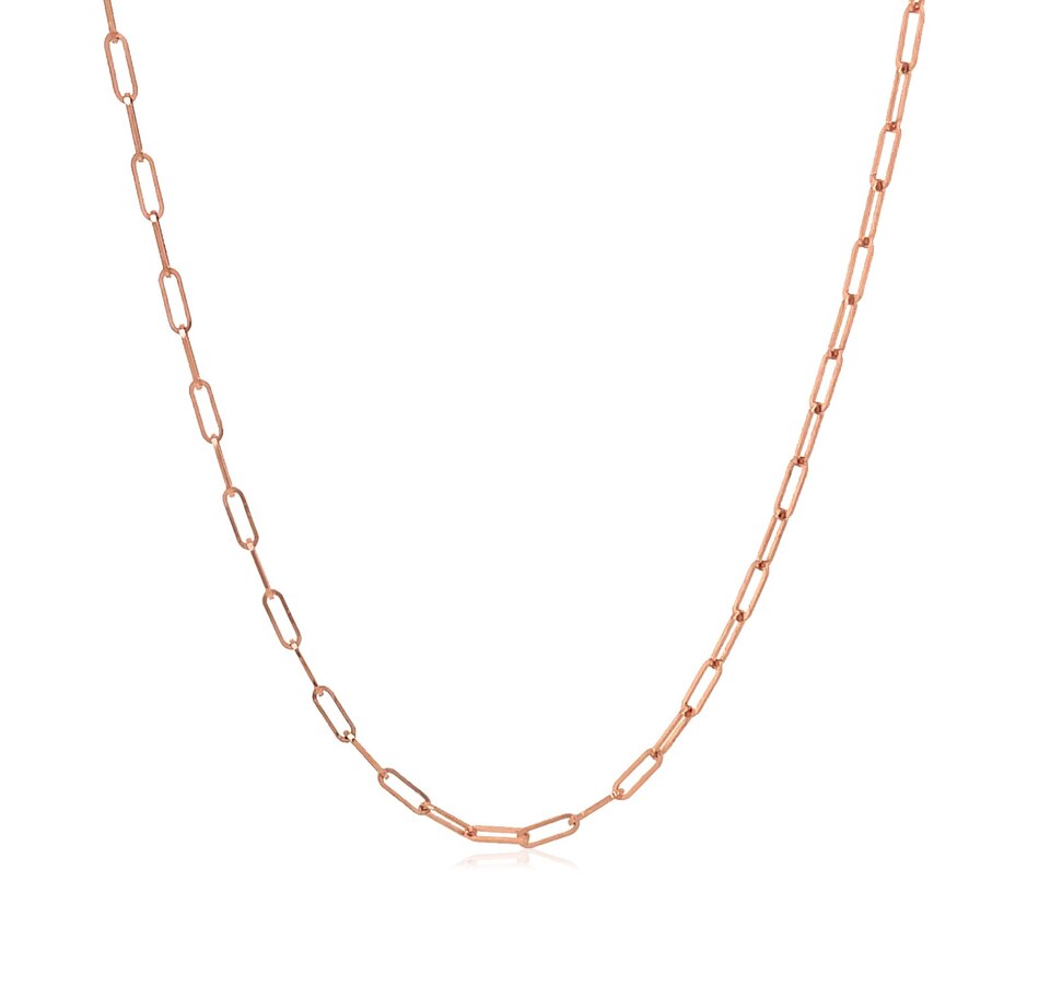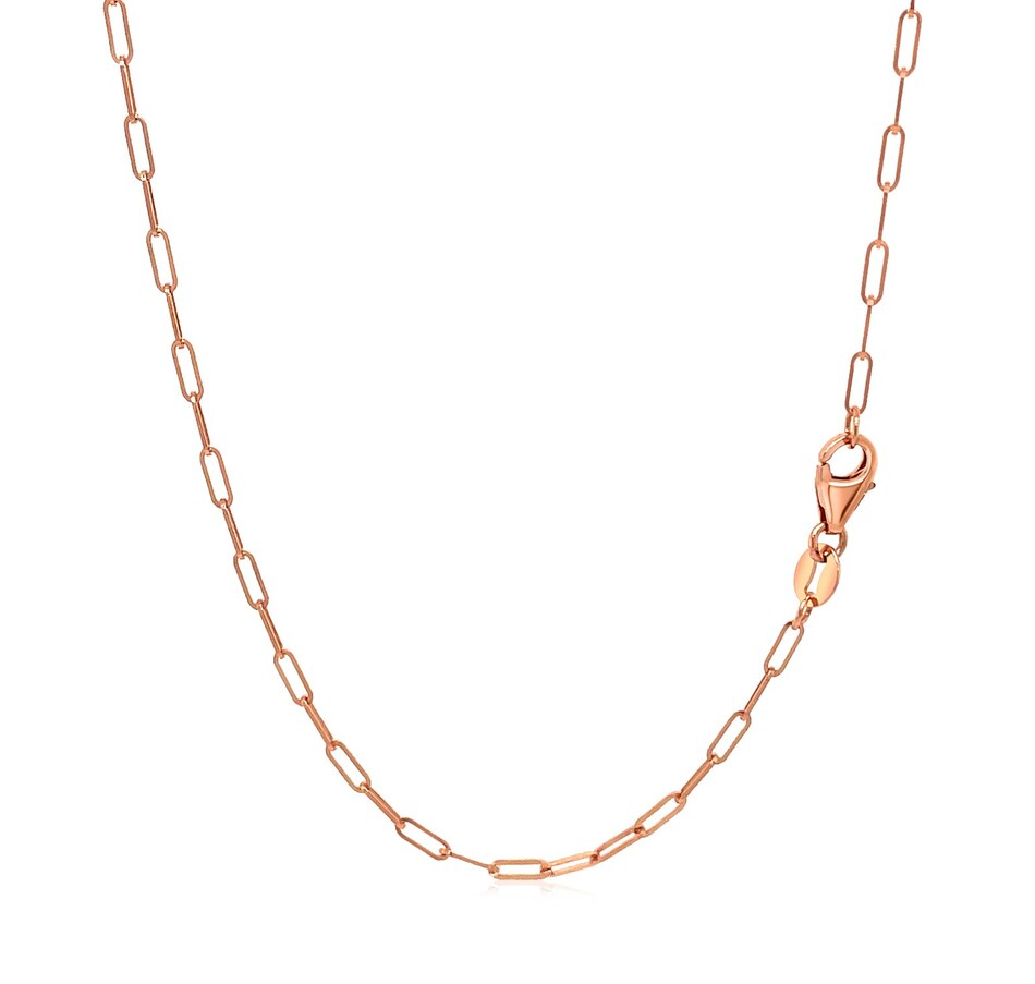 The delicate sophistication of 14K rose gold meets the modern simplicity of paperclip chain. Chain has 1.5mm wide links and closes with a lobster clasp.