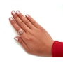 Indulge in the sophisticated allure of this 14K rose gold cocktail ring, where the gentleness of a light pink, oval-cut morganite gemstone beckons the gaze. Measuring a delicate 9x9 mm, this color-treated morganite is meticulously bezel set, emanating a soft, romantic glow. Encircling this central gemstone, a halo of natural white diamonds sparkles intensely, with a total weight of 3/8 carats. These diamonds, boasting a G-H color and SI1-SI2 clarity, are intricately woven into a basket weave pattern, enriching the ring with an enchanting play of light and texture. This size 7 ring marries comfort with grandeur, making it a perfect homage to craftsmanship and style, destined to become a cherished addition to any jewelry collection.