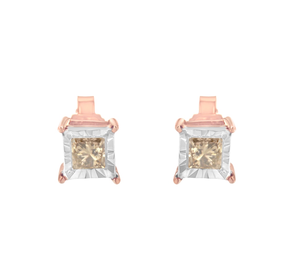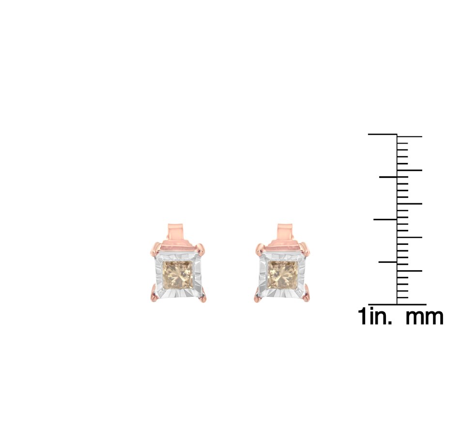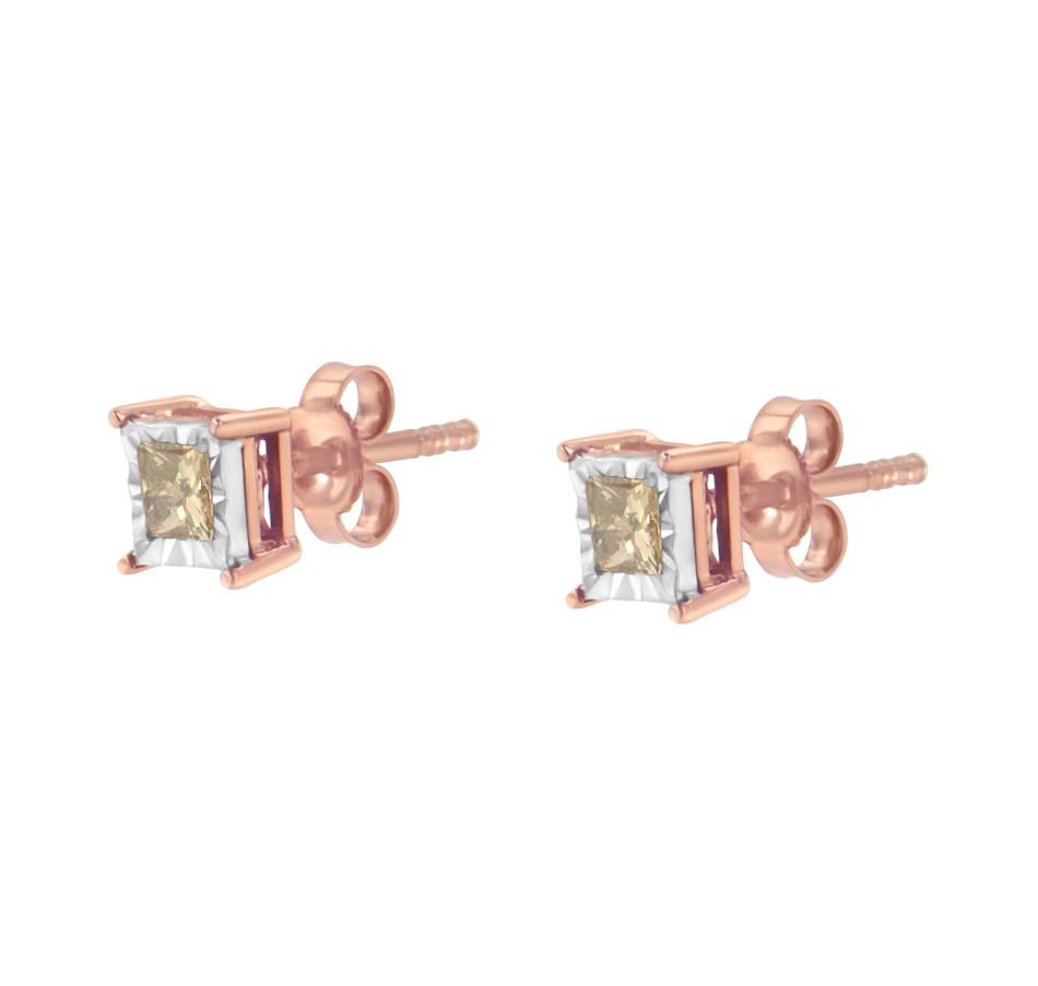 14K Rose Gold Plated Two-Tone .925 Sterling Silver 1/2 Cttw Princess-Cut Square Diamond Solitaire Miracle-Plate Stud Earrings (K-L Color, I2-I3 Clarity)