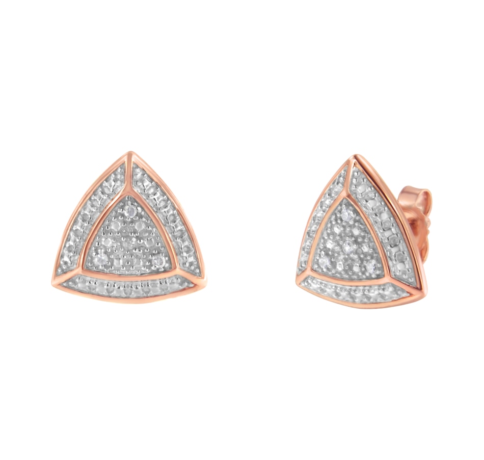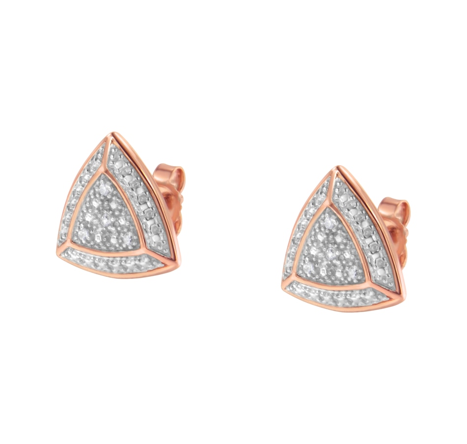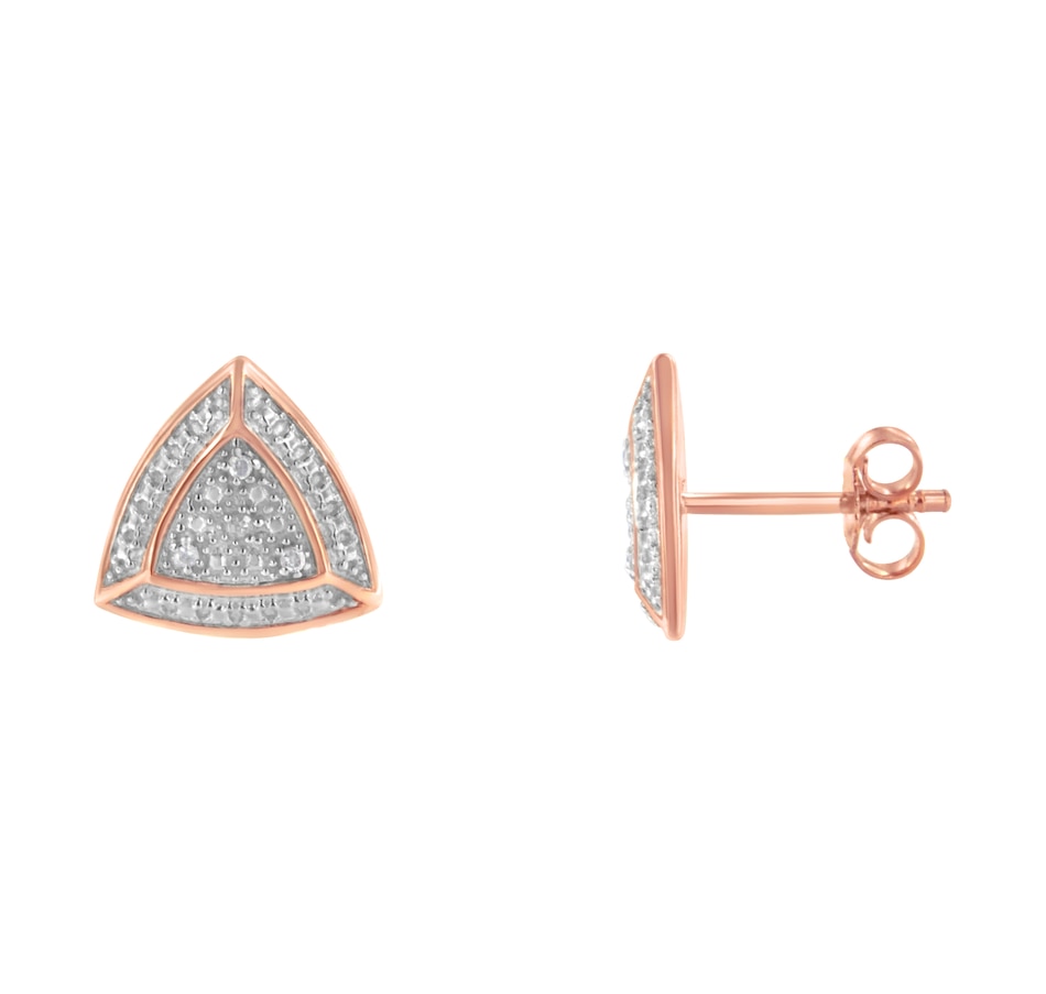 14K Rose Gold over .925 Sterling Silver Diamond-Accented Trillion Shaped 4-Stone Halo-Style Stud Earrings (H-I Color, I2-I3 Clarity)