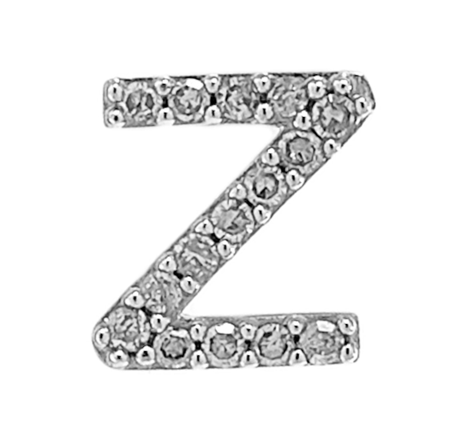 • (10) A,C,F,K,S or (19) B,M or (13) D,G,R or (15) E,Z or (12) H,O or (7) I,Y or (8) J,L,T or (17) N,W or (14) Q or (11) P,U or (9) V,X round, prong set & faceted diamonds (0.08 ctw)